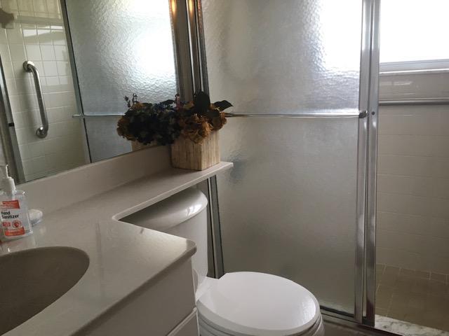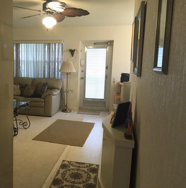 For 55 year olds or older FOR SALE a lovely 2 Bedroom, 1.5 Baths condo. It features impact windows, hurricane shutters, located on the second floor. You will be greeted with sunshine through windows in the corner master bedroom and kitchen, window in both bathrooms. Unit offers microwave, dishwasher, step-in shower and more. You will enjoy South Florida lifestyle with amenities like a fully equipped fitness center, indoor and outdoor pools, club house, beauty/barber shop, Walgreens, free transportation, security, close proximity to PBI airport, shopping, beaches, restaurants.