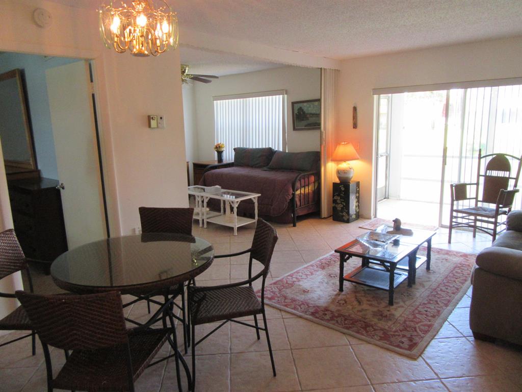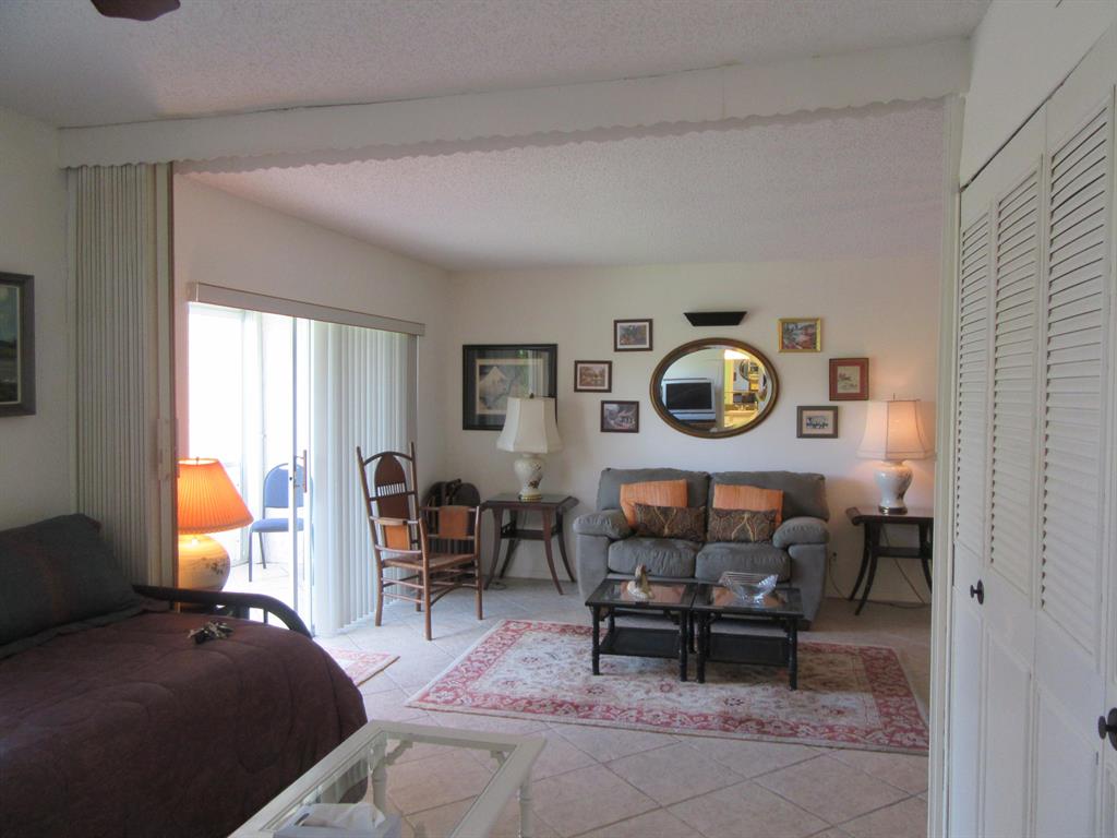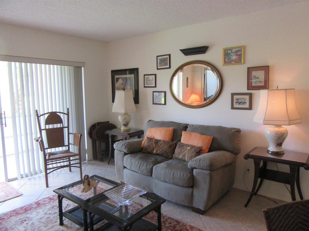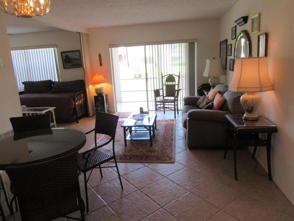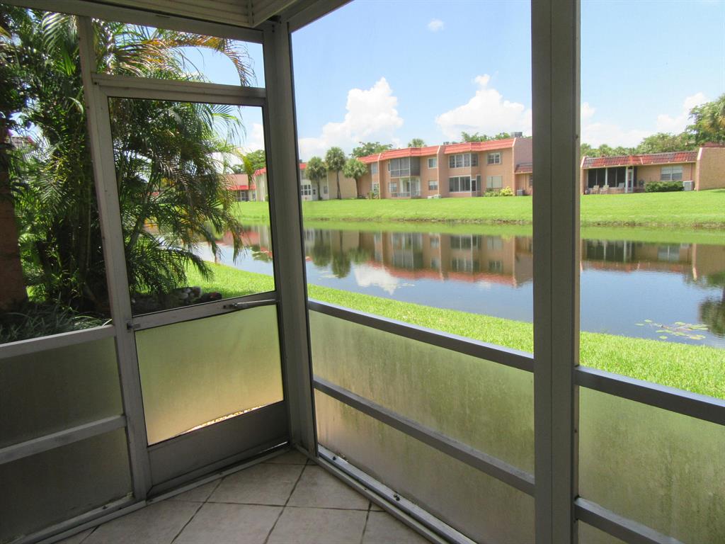 1ST FLOOR, 2 BDRM CONVERTIBLE, 2ND BEDROOM HAS A VINYL DIVIDER THAT CLOSES WHEN PRIVACY WANTED IN 2ND BEDRM/DEN. ALL TILED FLOORS, VANITIES UPDATED IN BATHROOMS, NEWER A/C & WTR/HTR. RECESSED LIGHTING IN KITCHEN WITH A LARGE WINDOW FOR LT & BRIGHT. WALK IN PANTRY & NEWER APPLIANCES.SCREENED ENCLOSED PATIO WITH BEAUTIFUL WATER VIEW ! CAN BE PURCHASED FURNISHED IF WANTED ! HAS EXTRA OUTSIDE STORAGE AT LAUNDRY FACLILITY A SHORT WALK AWAY. LOCATED IN GATED & SECURE COMMUNITY WITH LOTS OF AMENITIES ! HEATED POOLS & SPA HOT TUBS, BILLIARDS, TENNIS, SAUNA & MUCH MORE WHEN NORMAL TIMES PREVAIL ! LOCATED CLOSE TO SHOPPING , RESTAURANTS & TURNPIKE ! AIRPORT & OCEAN A SHORT DRIVE AWAY ALSO ! PARADISE AWAITS !