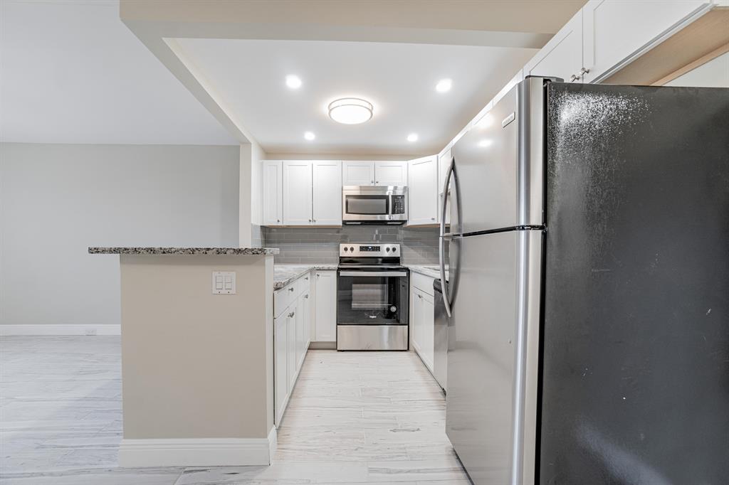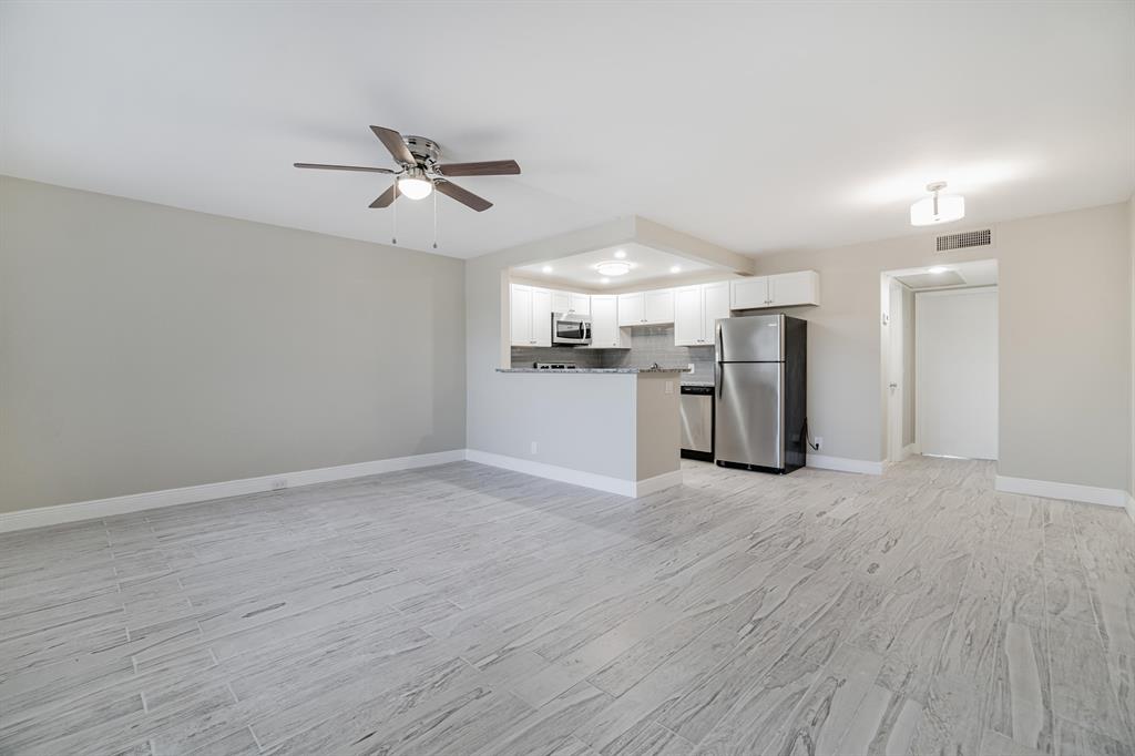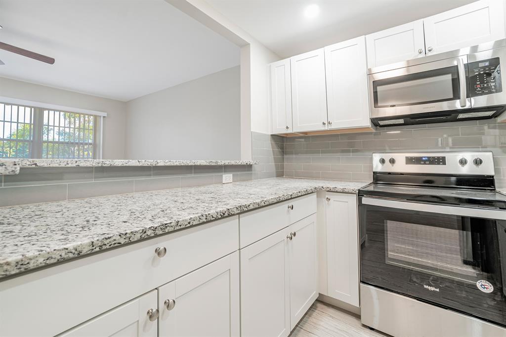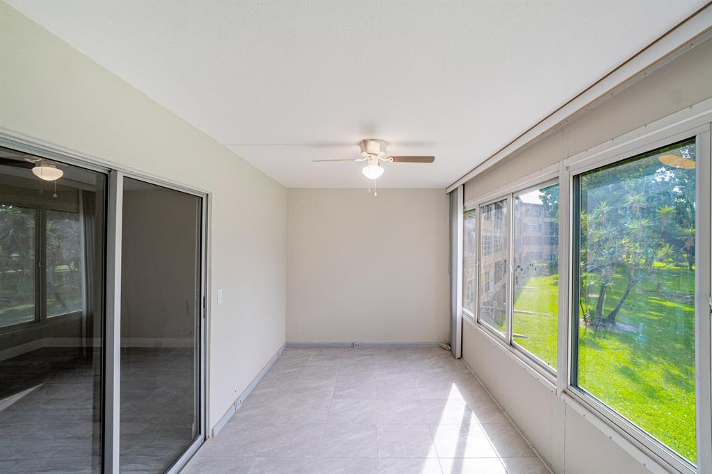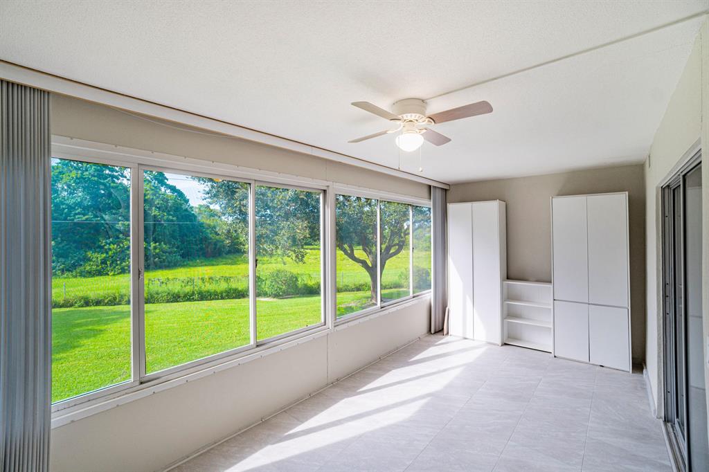 Open and airy newly remodeled condo on the second floor. Fantastic, oversized porch with a wonderful view. The terrace is a whopping 9' by 18. The serene terrace even has central air conditioning. Large windows, central air conditioning and a beautiful view complete this amazing unit. Brand new kitchen with stainless steel appliances and a stainless steel, double sink. Both the master and the half bath have been renovated. This unit must be seen to be believed. You will enjoy the South Florida lifestyle with amenities such as a fully equipped fitness center, club house with over 1200 seat theater, free transportation, close proximity to PBI airport, shopping, beaches and many restaurants.