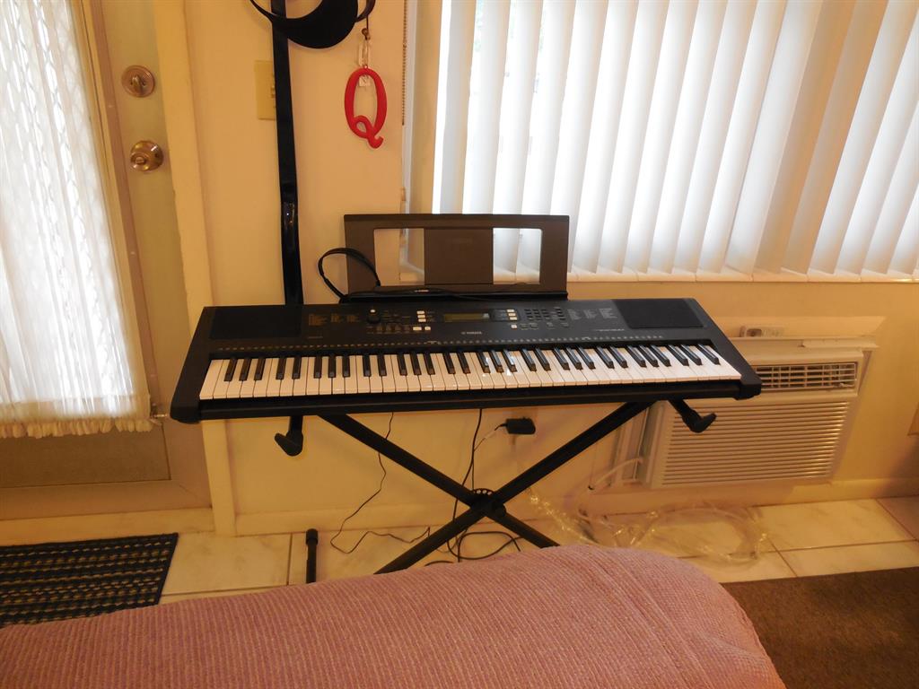 You must see this two bedroom, one and one half bath, second floor condo with large living / dining area located in a 55+ resort style community. Very nicely kept and fully funished - ready for your personal touches. Open concept fully equipped kitchen including additional mini-fridge. This wonderful condo features newer impact windows, 2 A/C units, 4 ceiling fans, consistent tile flooring throughout, a walk-in shower in the main bathroom and a screened lanai. WiFi and basic cable are included in low monthly maintenance fee. Piano does not convey.