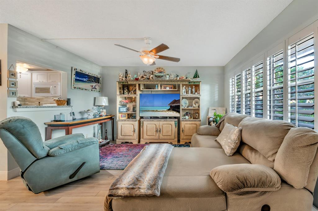 This beautiful first floor 1 bedroom 1 1/2 bath condo has been renovated & is in Century Village located in West Palm Beach. Many upgraded features that include wood floors, newer a/c and water heater, plantation window shutters, granite counter-tops w/tiled back splash, pantry cabinet, enclosed porch w/ private garden view, near community pool. Century Village has so many great activities to offer shows, dancing, bingo, sailing & fitness clubs, indoor heated pool, resistance pool, yoga room, weight room, wood workshop, billards, tennis, shuffleboard, bocce and so much more. If needed the Community Courtesy Bus can take you many places. The Village is located near shopping, restaurants, golf, beaches etc.