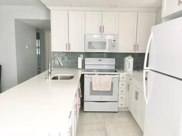 For sale in 55 + adult retirement community an absolutely move-in condition condo. This 2 Bedroom, one and one half Baths unit boasts beautiful tiled floors throughout, Central Air, open plan remodeled kitchen, with all new appliances, stainless steel double sinks, granite counter tops. The corner sunny end unit is located on the second floor with lift access.You will enjoy South Florida lifestyle with amenities like a fully equipped fitness center, club house, free transportation, security, close proximity to PBI airport, shopping, beaches, restaurants. Hurry, will not last