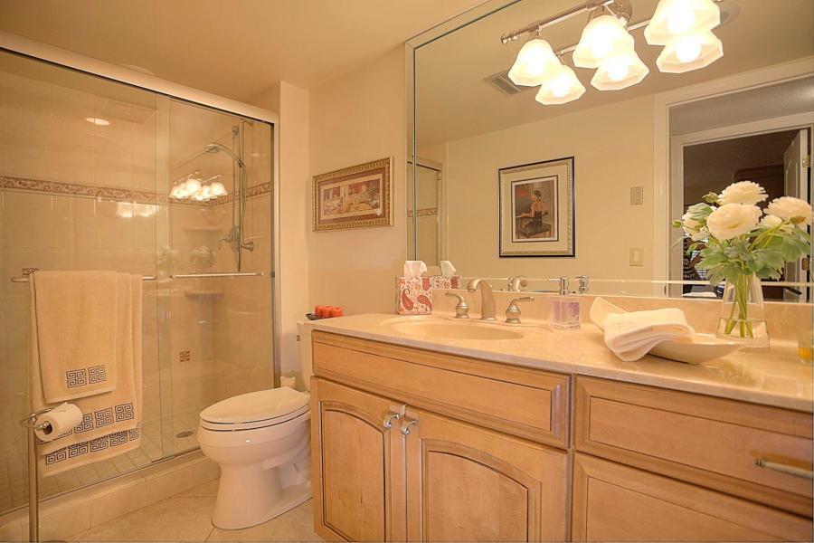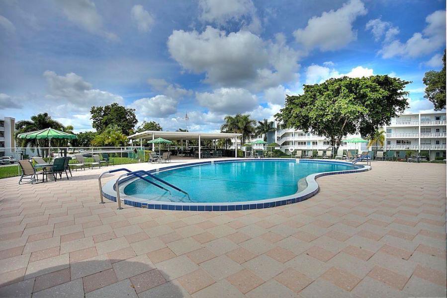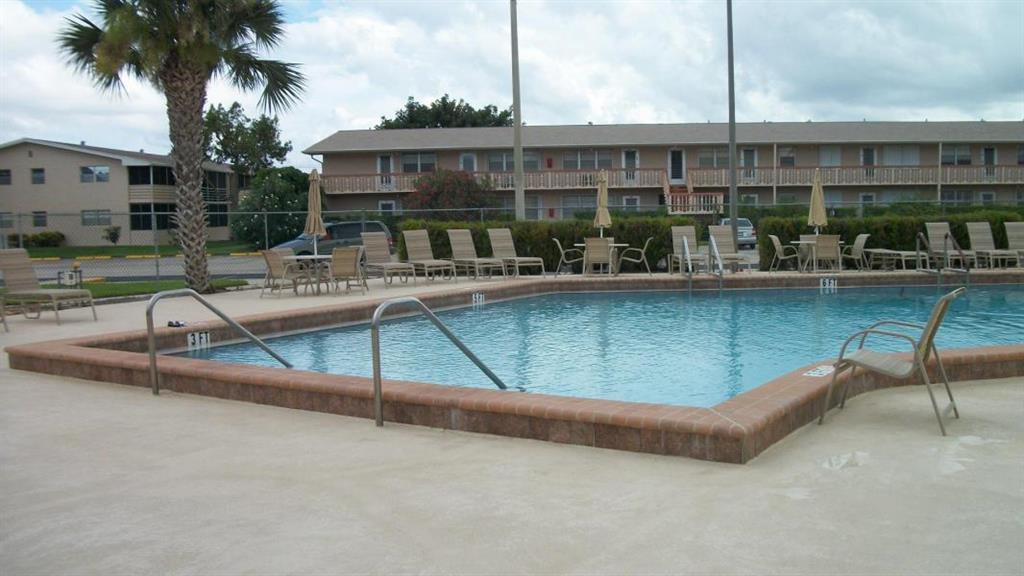 For sale in a 55+ adult retirement community in Century Village - beautiful corner condo on the 4th floor. Absolutely in move-in condition! Enjoy a gourmet kitchen, featuring stainless steel appliances, granite counter tops, all wood custom cabinets, amazing tile floors throughout, two full remodeled bathrooms, 2 magnificent sunny bedrooms. Welcome home! You will enjoy South Florida lifestyle with amenities like a fully equipped fitness center, club house, free transportation, security, close proximity to PBI airport, shopping, beaches, restaurants.
