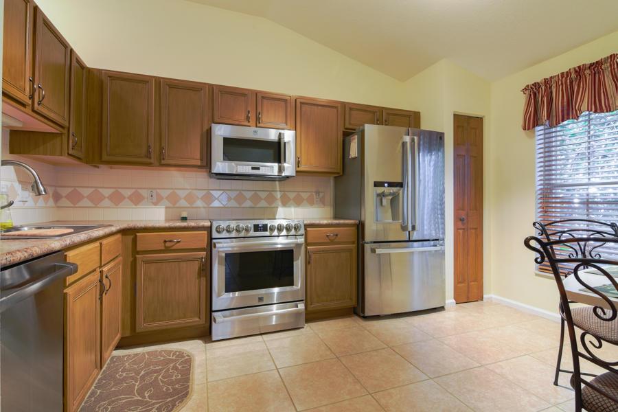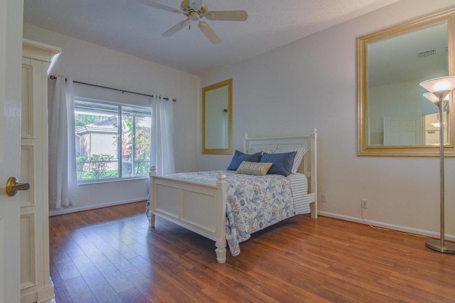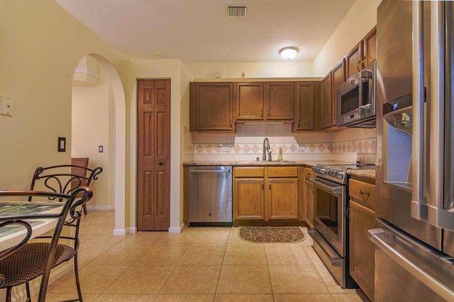 Beautiful 3/2/2 villa in mint condition in ultra convenient Andros Isle, original builders' model. Remodeled and updated Kitchen with SS appliances. Updated bathrooms with high granite surfaced vanities. Hard floors throughout, no carpet. Large extended screened rear patio, partially covered. Very quiet section, yet close to gate for easy in and out. HOA includes all landscaping, irrigation, security gate staffed 24/7. Monitored security, exterior painting, roof cleaning, basic CATV, broadband internet, WiFi, Infinity Xbox and DVR. No age restrictions. Pets OK (no pitbulls). Gorgeous clubhouse with heated pool, large fitness center, tennis and BBall. Private road to Publix. Note that property tax will reduce in 2019 by over $400.