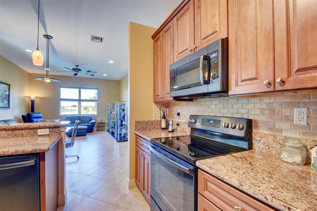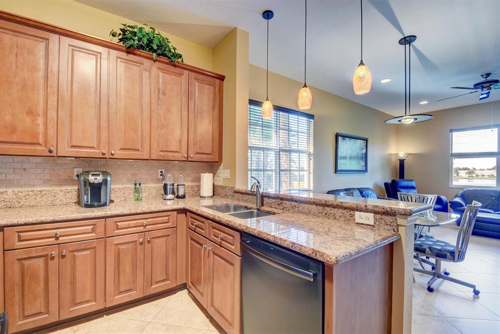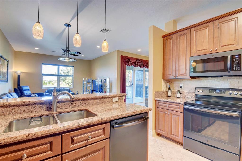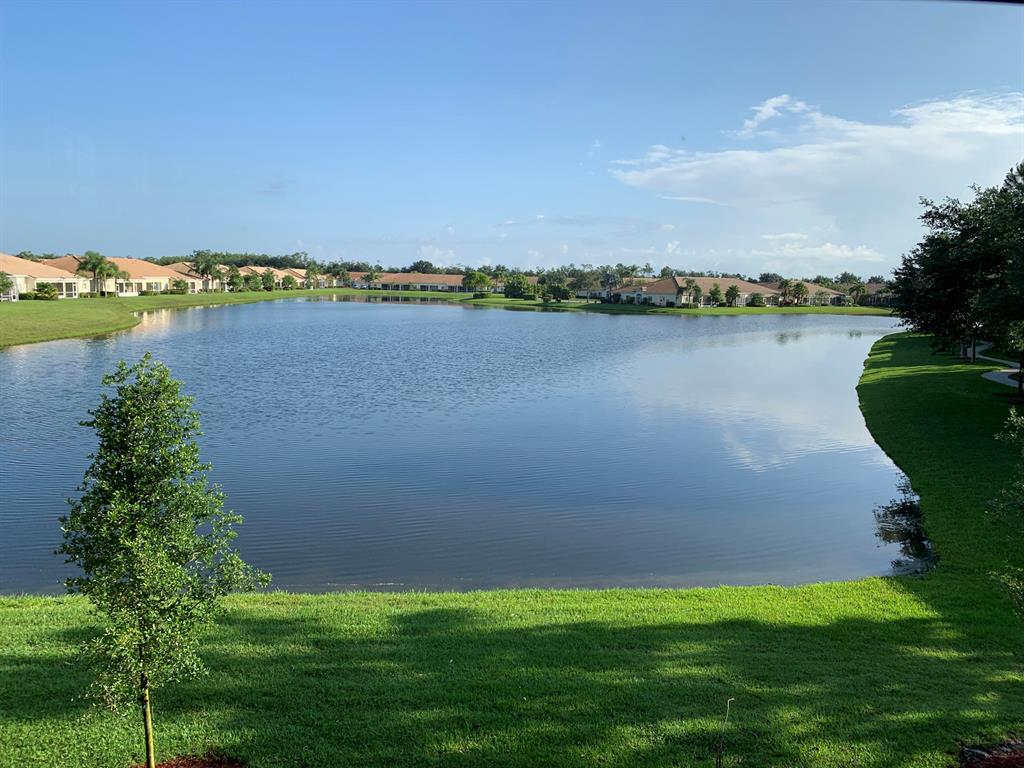 MUST SEE dream home Fabulous 3BR, 2BA coach home with fantastic lake views in 55+ Resort Community. This second floor open concept corner unit with private elevator has custom paint, window treatments and ceiling fans throughout. Kitchen boasts GE Black Slate appliance suite (2018), compliments granite counters and tile backsplash. Extra pull out shelves in pantry. Pendant lights over granite breakfast bar overlooking dining Cafe and Family Room. Master BR has tray ceiling and custom closets and Master Bath with granite counters, dual sinks and etched glass shower enclosure. 2nd BA with etched glass tub enclosure.Large Laundry Room with GE w/d, utility tub and extra storage cabinets. Other features include 5-ton A/C (2017) impact resistant windows and sliders recessed lights