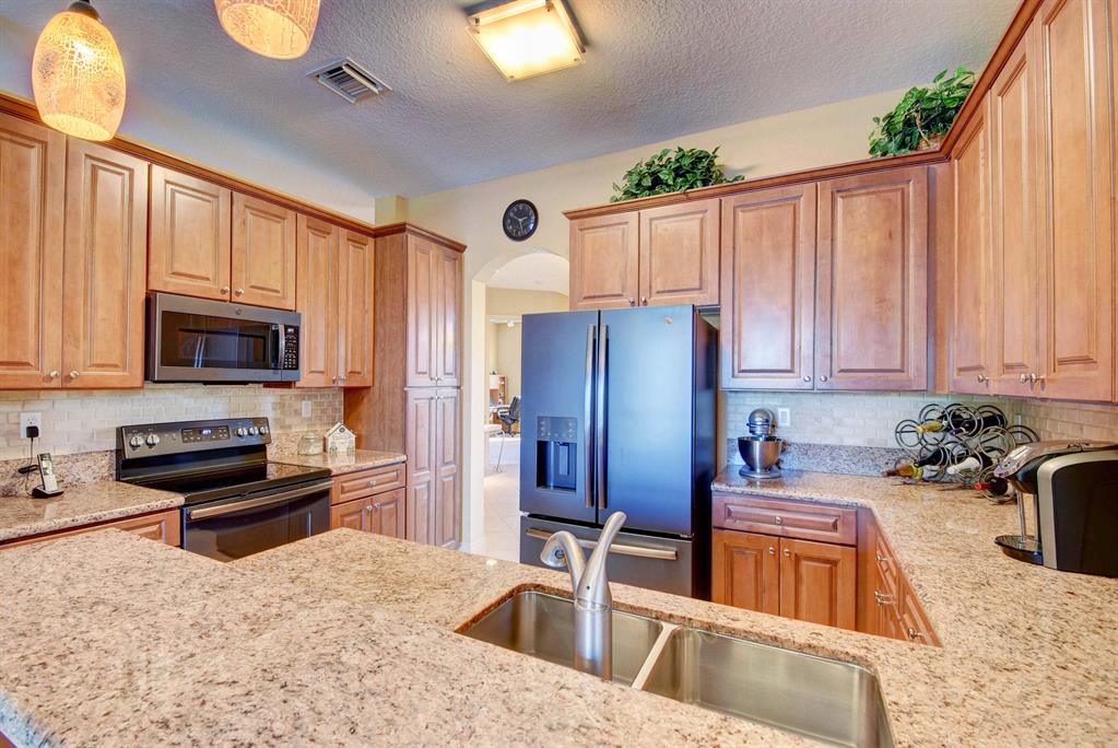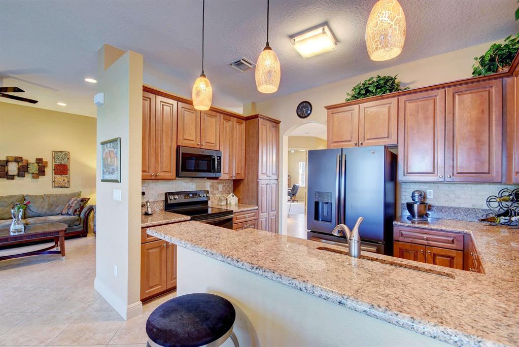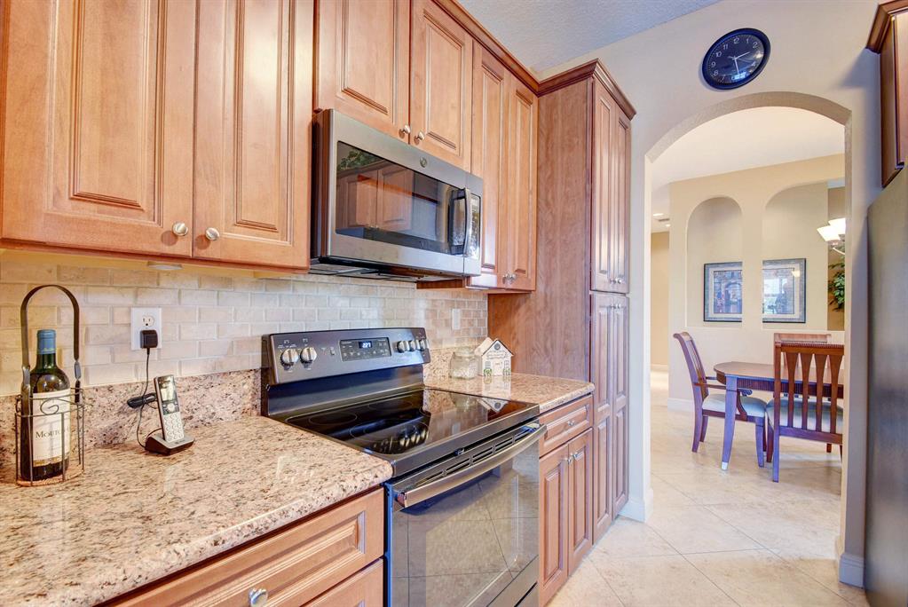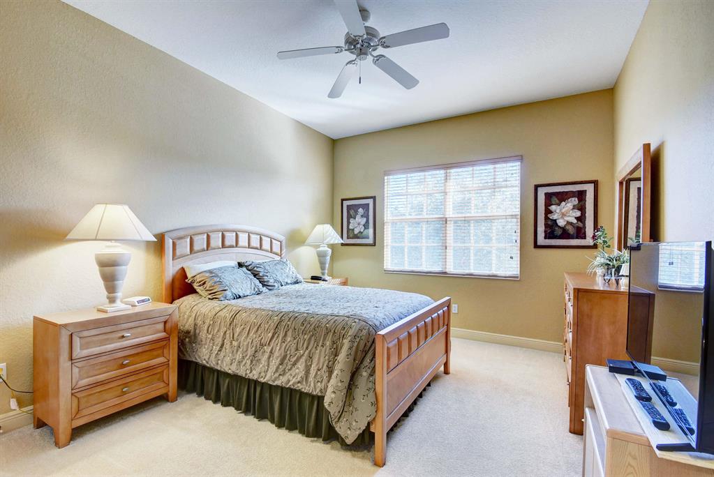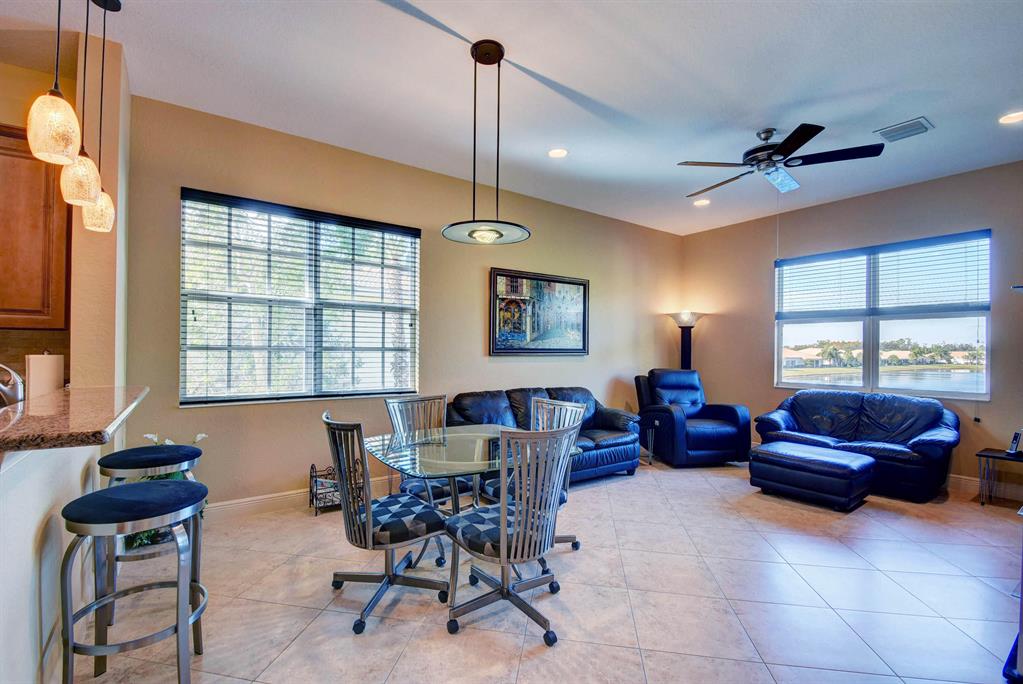 MUST SEE dream home Fabulous 3BR, 2BA coach home with fantastic lake views in 55+ Resort Community. This second floor open concept corner unit with private elevator has custom paint, window treatments and ceiling fans throughout. Kitchen boasts GE Black Slate appliance suite (2018), compliments granite counters and tile backsplash. Extra pull out shelves in pantry. Pendant lights over granite breakfast bar overlooking dining Cafe and Family Room. Master BR has tray ceiling and custom closets and Master Bath with granite counters, dual sinks and etched glass shower enclosure. 2nd BA with etched glass tub enclosure.Large Laundry Room with GE w/d, utility tub and extra storage cabinets. Other features include 5-ton A/C (2017) impact resistant windows and sliders recessed lights