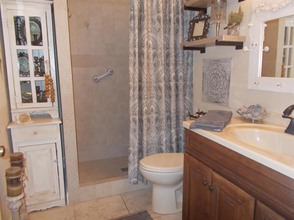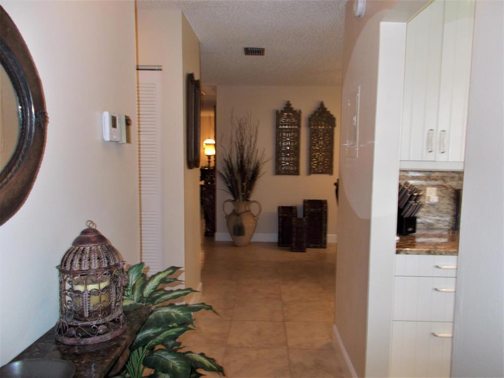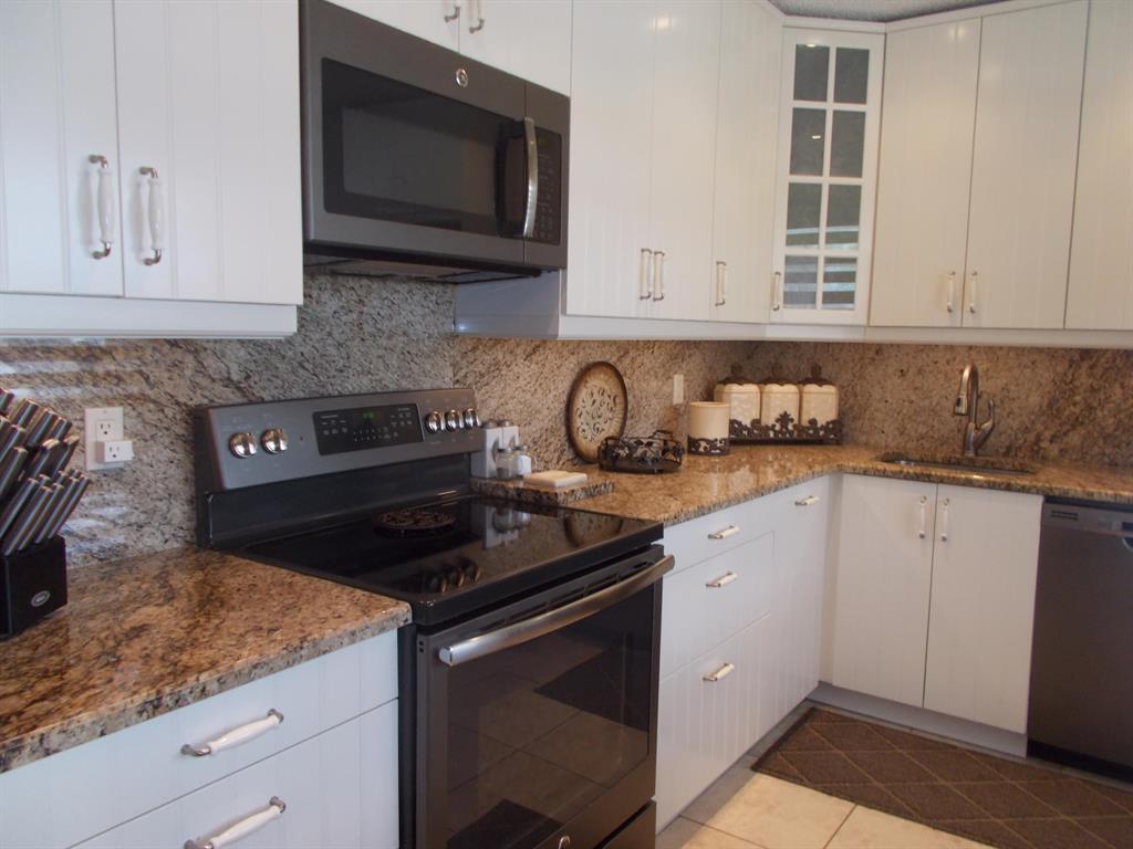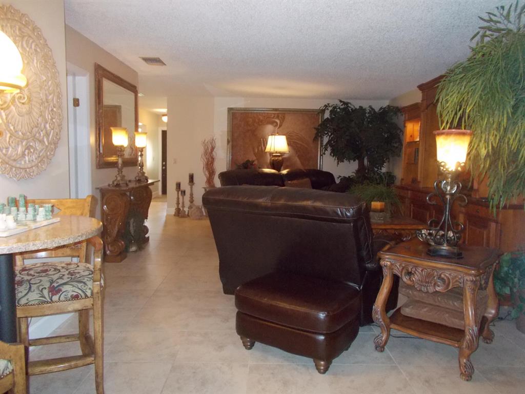BEAUTIFULLY UPGRADED WATERFRONT 2/2 CORNER UNIT. YOU WILL FEEL THE ELEGANCE THE MOMENT YOU WALK IN THIS LRGST FLOOR PLAN, FROM THE NEW TRAVERTINE LOOK TILE THRU OUT TO A TOTALLY UPDATED EAT-IN KITCHEN W/GRANITE COUNTERS, WHITE WAINSCOAT STYLE CABINETY & BRONZED SS APPLIANCES. THE FORMAL DINING AREA OFFERS PLENTY OF SPACE FOR A LG TABLE FOR ENTERTAINING & THE SPACIOUS LIVING RM GIVES YOU MANY OPTIONS FOR YOUR FURNITURE LAYOUT. MASTER BDRM HAD WINDOW REMOVED TO LANAI TO PROVIDE ADDTL WALL SPACE, W/TWO CLOSETS & ONE BEING A WALK IN. BOTH BATHS HAVE BEEN UPDATED & OFFER WALK IN SHOWERS. SCENIC VIEWS FROM THE A/C'D LANAI W/ADDTL CLOSET SPACE & WASHER & DRYER. ACCORIDIAN SHUTTERS & NEW FRNT DOOR. JUST MOVE IN! ACTIVE 55+ COMM W/POOL, TENNIS, GAME RM, AUDITORIUM, FITNESS & SHUFFLE BD. NO PET