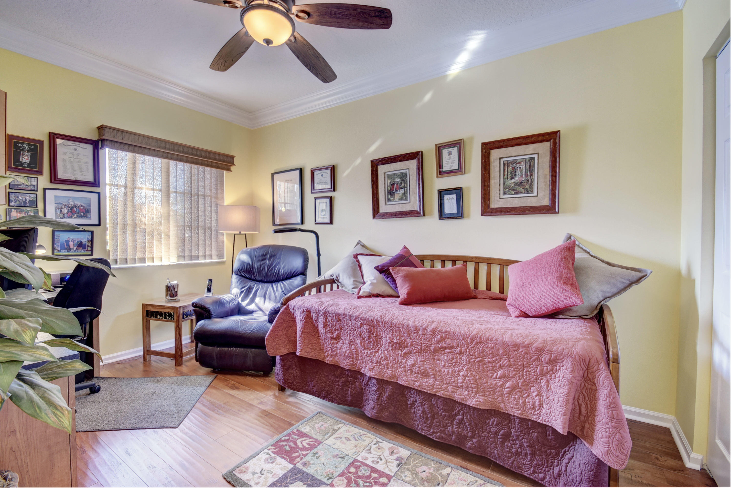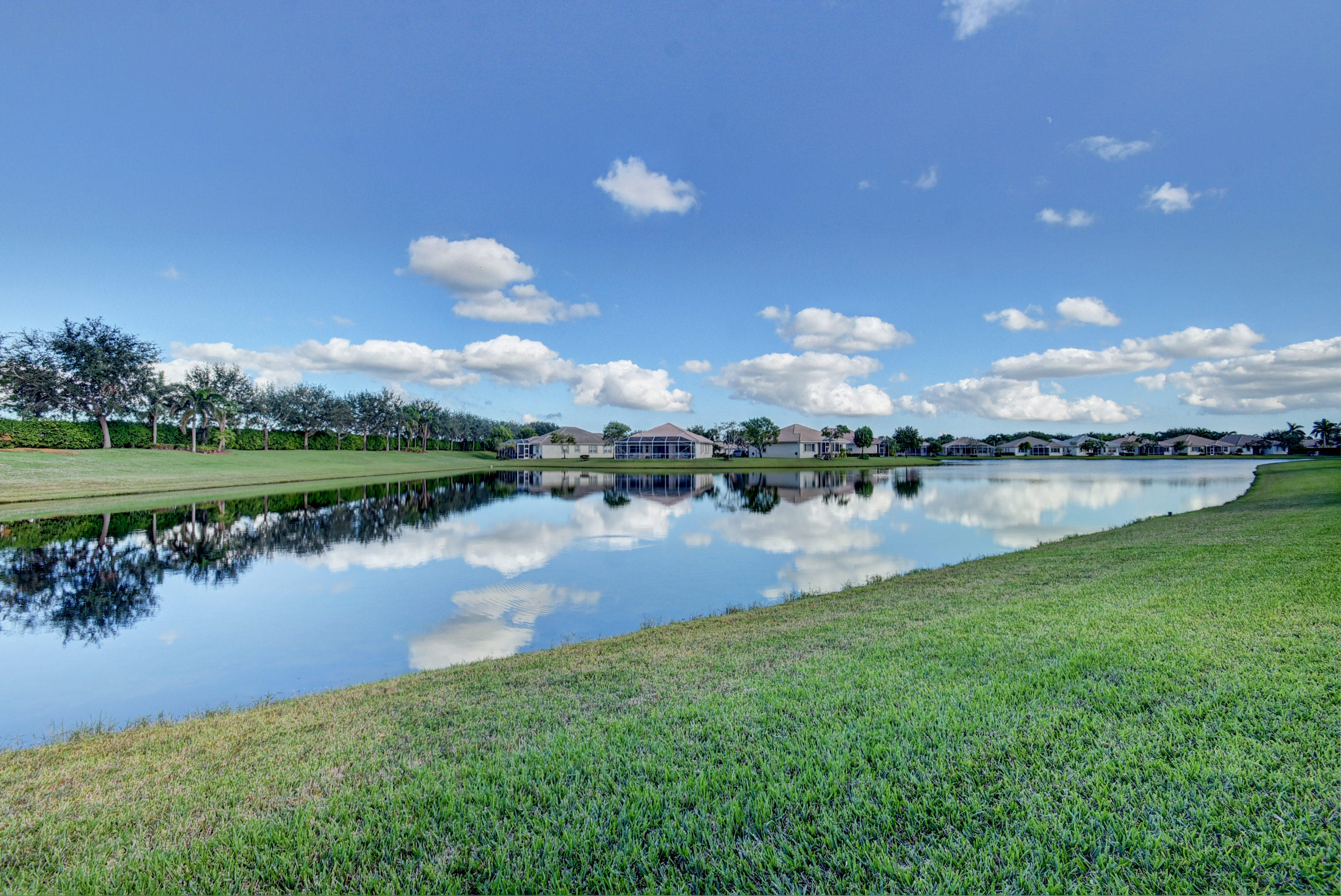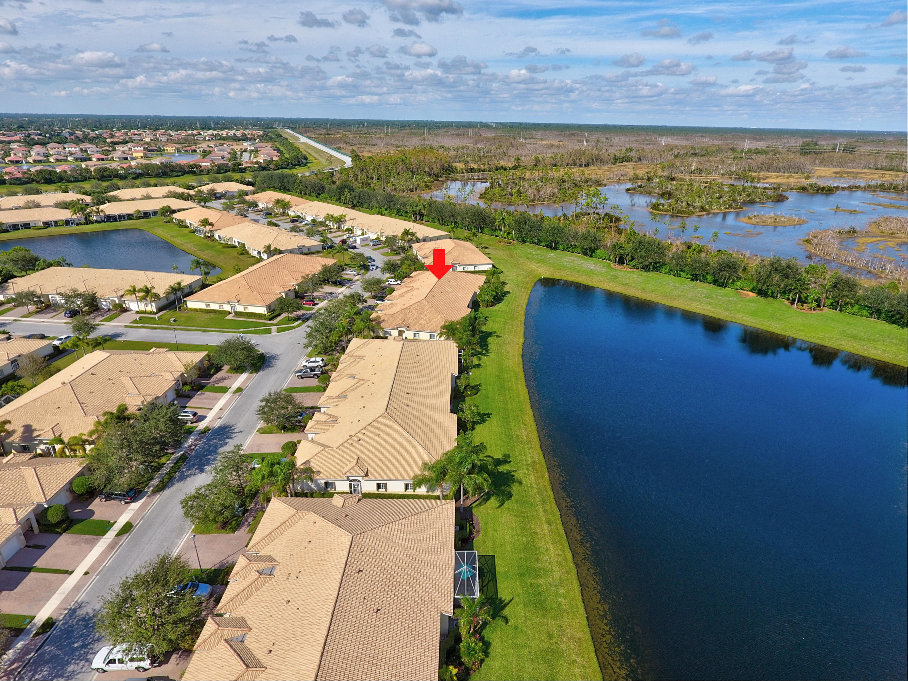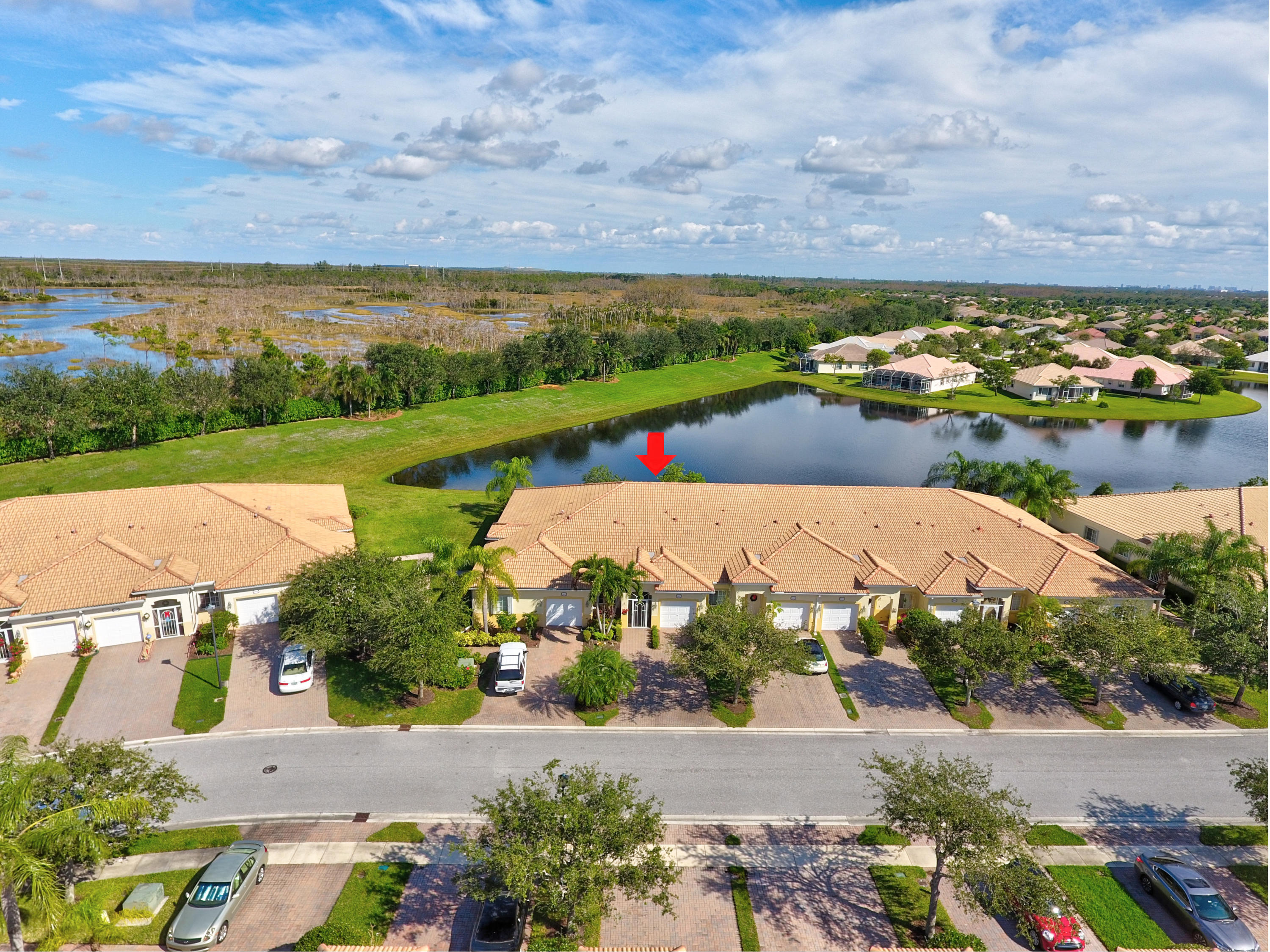 Wow...Stunning 2 bedroom villa plus den/office/formal dining room; fexible space. Enjoy viewing the glistened sun-lit lake while enjoying a barbecue or winding down at the end of a long day. No expense has been spared in this well maintained home. Crown moldling throughout, freshly painted interior,Tile on diagonal in living areas - laminate in bedrooms. Separate Laundry room makes this villa unique to others. W/D NOT In GARAGE! Designer window treatments, Upgraded ceiling fans and custom mirrors add to this home's uniqueness.Kitchen has Granite countertops and SS appliances. Master bath has granite & frameless shower door.Built ins in all closets for easy organizing. Serene Lake view with screened in back patio. No neighbors in back! And Accordian Shutters! Furniture is negotiable