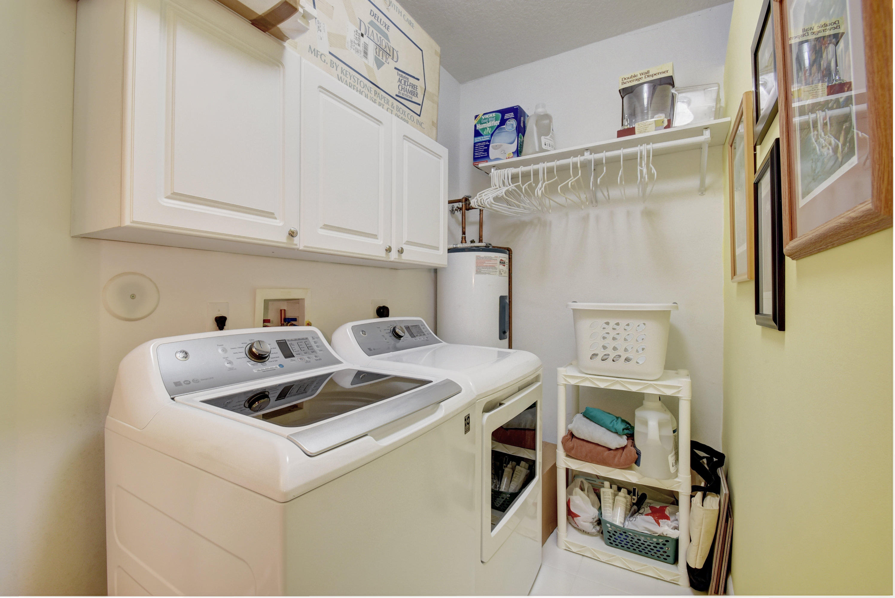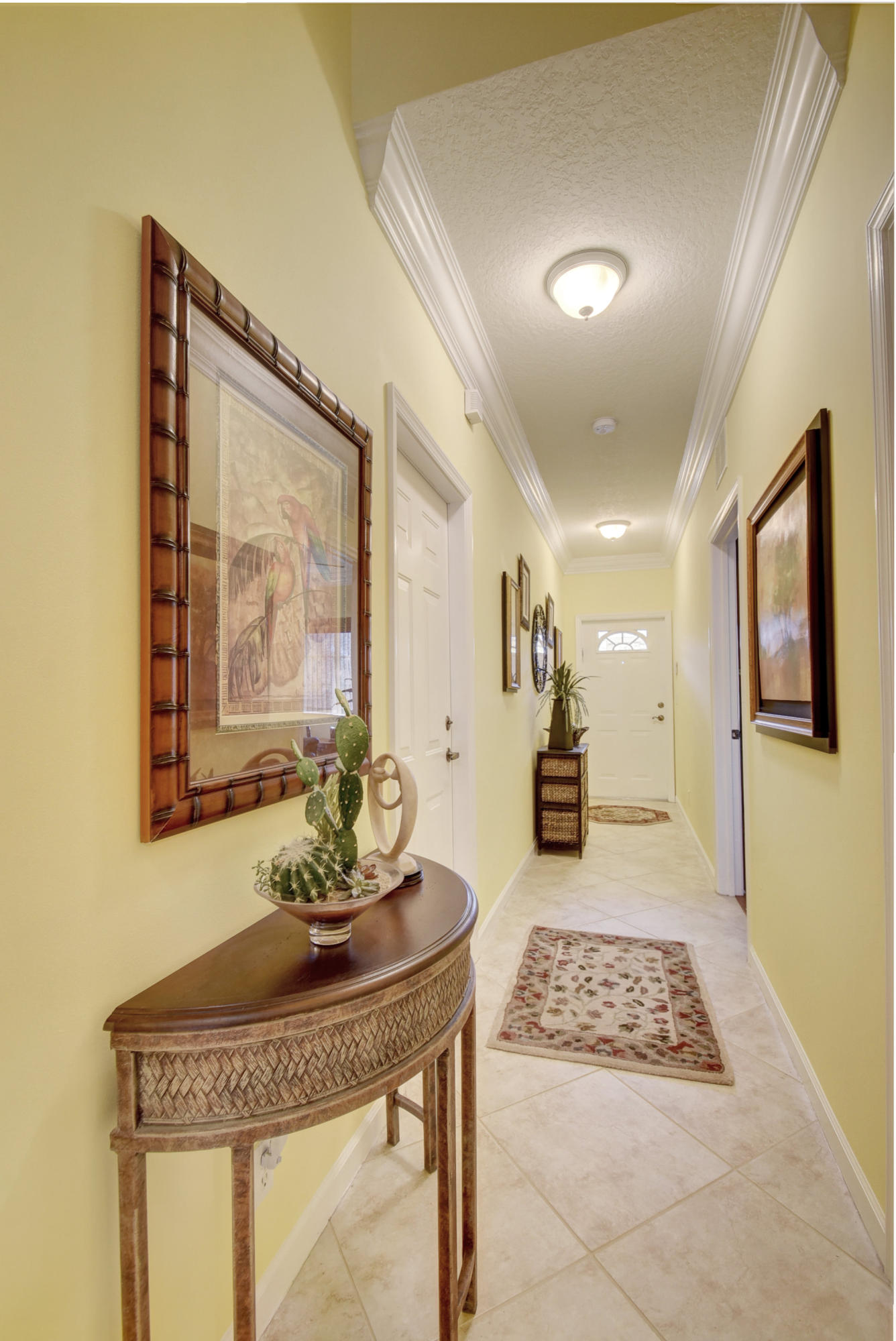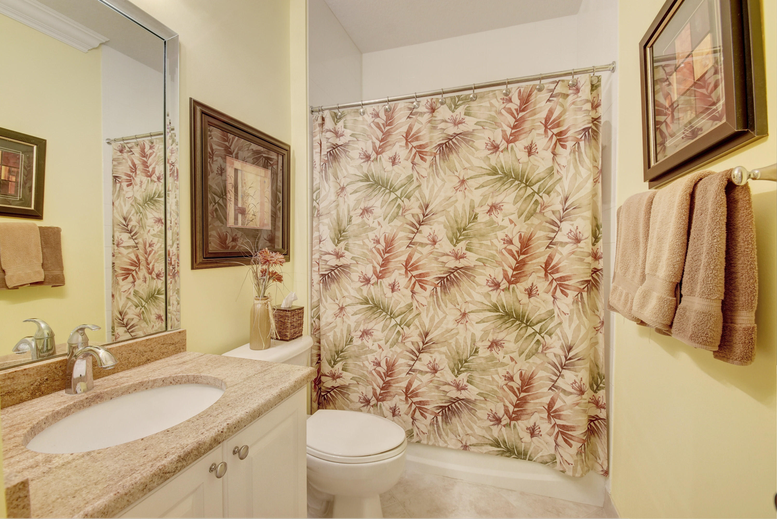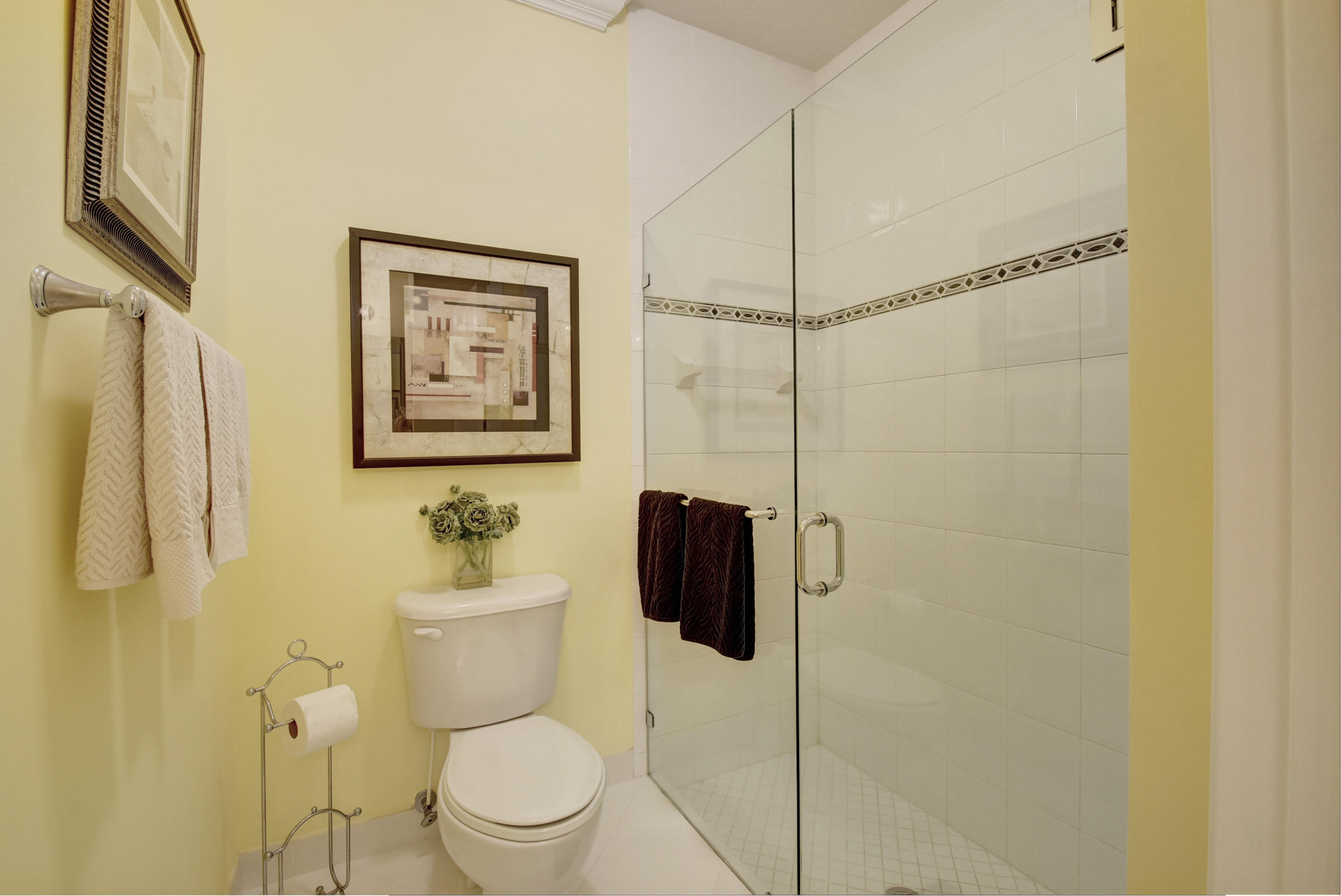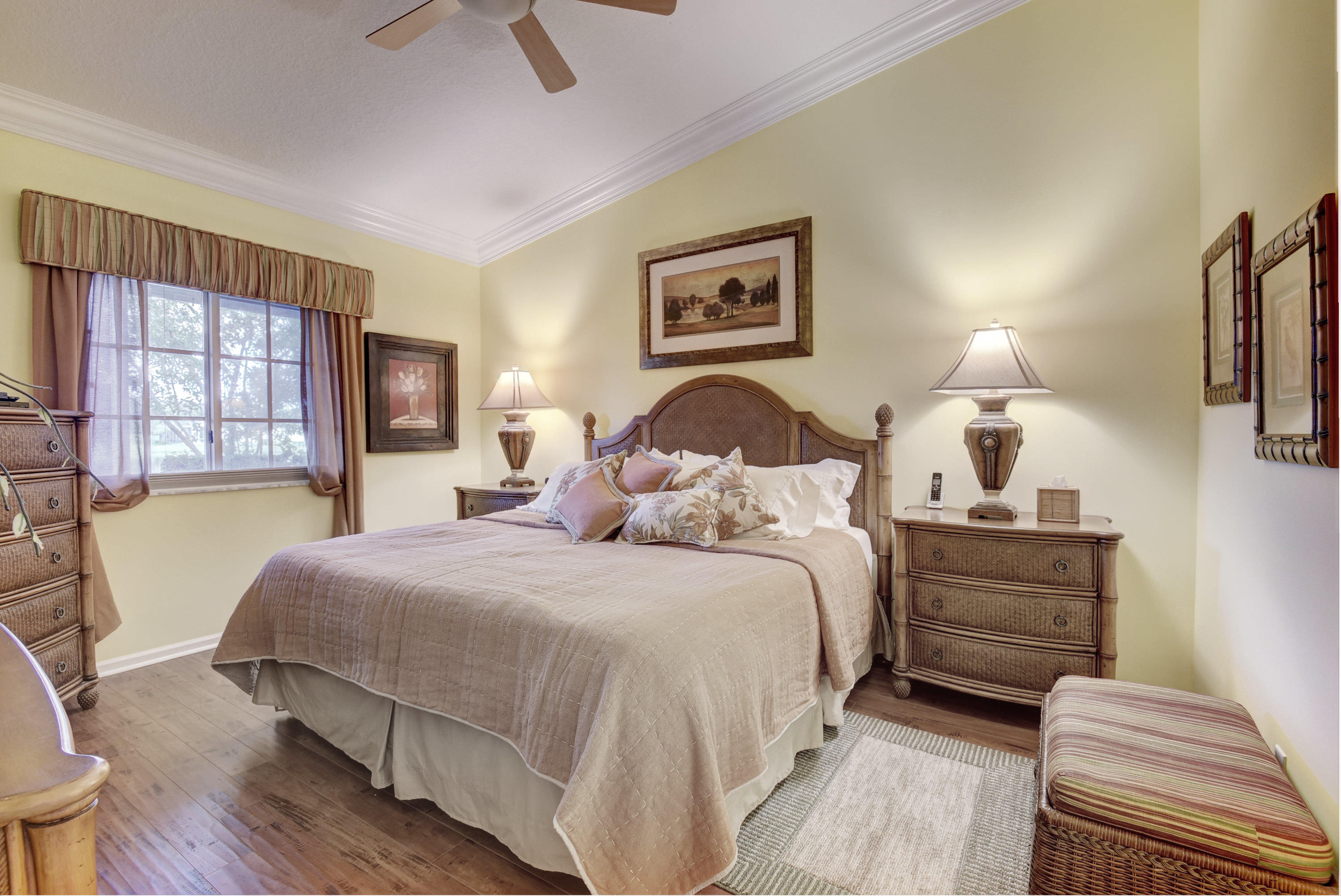 Wow...Stunning 2 bedroom villa plus den/office/formal dining room; fexible space. Enjoy viewing the glistened sun-lit lake while enjoying a barbecue or winding down at the end of a long day. No expense has been spared in this well maintained home. Crown moldling throughout, freshly painted interior,Tile on diagonal in living areas - laminate in bedrooms. Separate Laundry room makes this villa unique to others. W/D NOT In GARAGE! Designer window treatments, Upgraded ceiling fans and custom mirrors add to this home's uniqueness.Kitchen has Granite countertops and SS appliances. Master bath has granite & frameless shower door.Built ins in all closets for easy organizing. Serene Lake view with screened in back patio. No neighbors in back! And Accordian Shutters! Furniture is negotiable