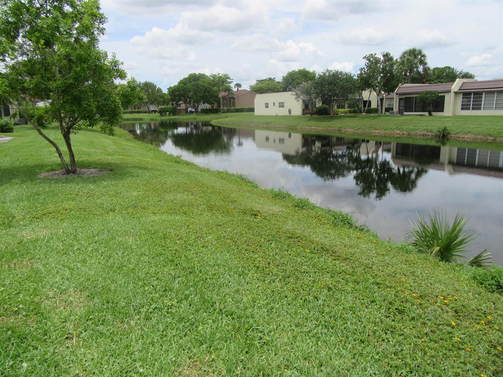 END VILLA, SPACIOUS FLOOR PLAN W/ EXTRA LARGE GLASS ENCLOSED PATIO UNDER AIR W/ UTILITY CLOSET FOR WASHER & DRYER & STORAGE. BEAUTIFUL WATER VIEW ! A/C RECENTLY REHAB'D. ALL HAS BEEN SEASONAL & GENTLY USED WITH ORIGINAL OWNER'S. BEING SOLD AS/IS & TURNKEY. NEW ROOF WAS JUST FINISHED JULY 2018 ! FRONT PORCH/COVERED ENTRY CAN BE SCREENED ENCLOSED IF WANTED. PARKING RIGHT IN FRONT OF VILLA! GREAT LOCATION! A SHORT WALK TO LK SUSAN POOL & BUS STOP ACROSS THE STREET. HAS EXTENDED CABLE & WIFI INCLUDED IN THE HOA .GUARD GATED COMMUNITY, 2 CLUBHSES, HEATED POOLS & SPA HOT TUBS, GYMS, TENNIS, CAFES FOR BREAKFAST & LUNCH. TWO ACTIVITIES DIRECTORS TO KEEP YOU BUSY & HAVING FUN ! LOCATED CLOSE TO SHOPPING, RESTAURANTS & TURNPIKE ! AIRPORT & OCEAN A SHORT DRIVE AWAY ALSO ! PARADISE AWAITS !
