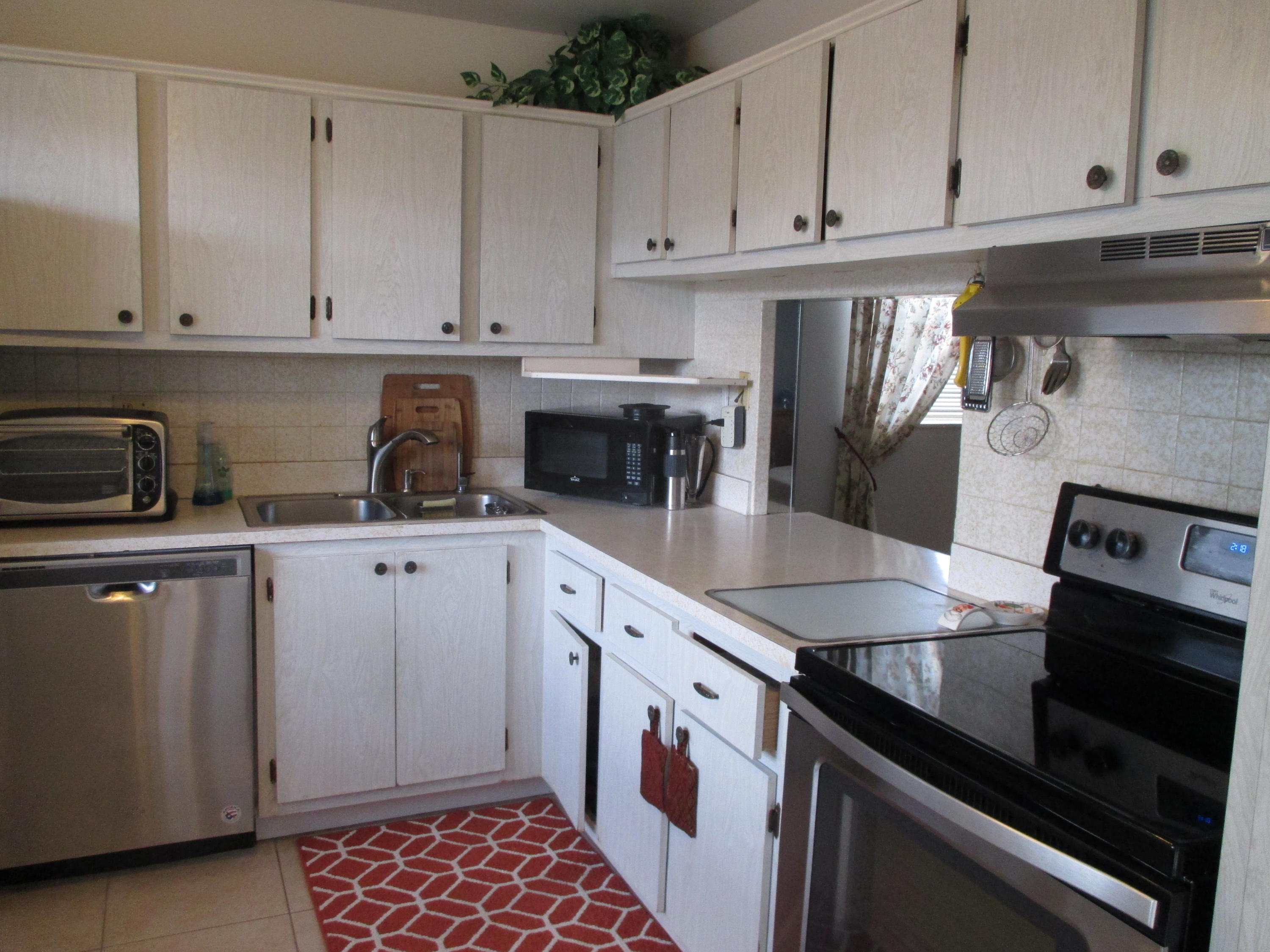Corner 2/2 Villa with formal dining area and lg eat-in kitchen. Inside laundry and enclosed 10x12 patio with water views. Newer appliances and all tile fls. 10 miles of shore line within Golden Lakes-interior canals. Short one blk walk to Phase B Clubhouse. One pet OK 30 lb limit. Active 55+ community with courtesy Bus 2 days a wk to Grocery store, malls, shops etc. Full time social director schedules shows, trips etc. Come Discover Golden Lakes.