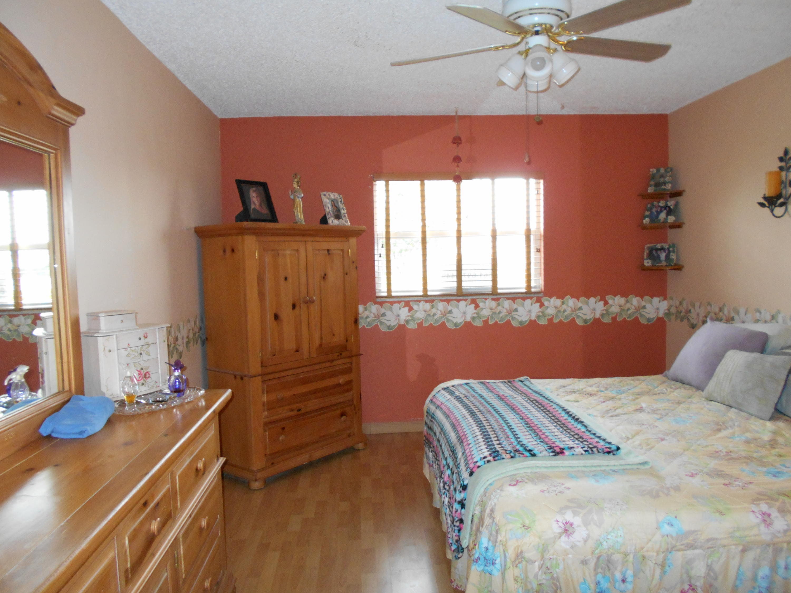 Diamond in the rough, Interior unit, cooler in summer, warmer in winter, beautiful kitchen cabinets, new roof 2011, Ref. approx. 3 yrs., Maytag w/d newer, hurricane protection, tiled floors, exception bedrooms have wood laminate, newer a/c, master bth w/some updates, wood lam. in bedrooms . Close to P.O., Grocery, I-95,Turnpike, 15 min. to PBIA airport