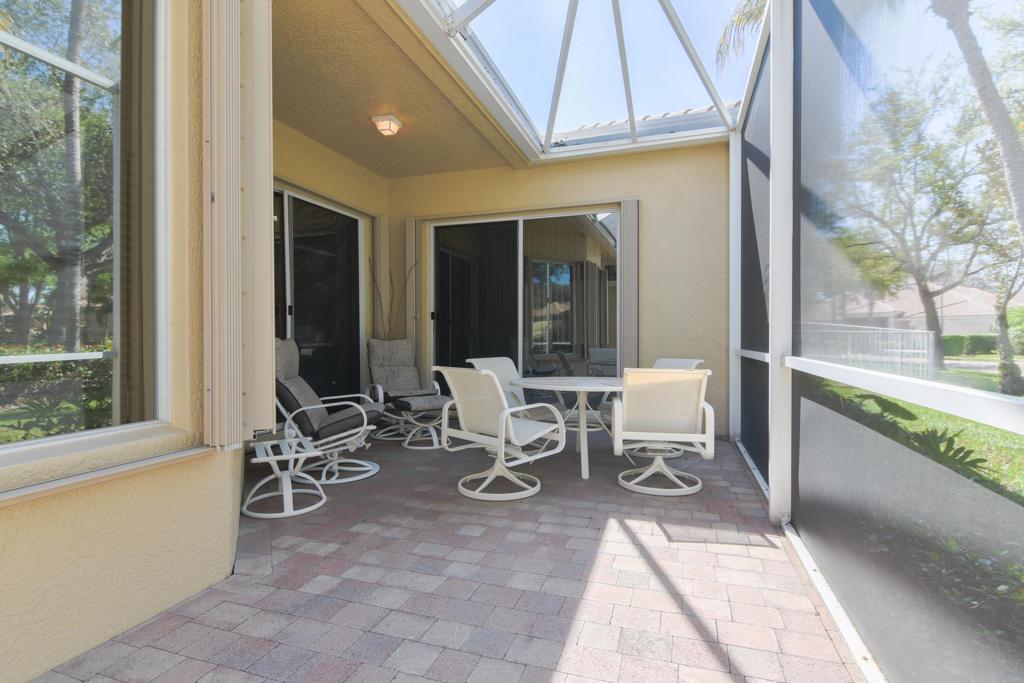 Sparkling 2/2/2 corner villa in ultra convenient Andros Isle. Spacious patio, covered and screened, with access from FR, DR and MBR. Bright and open Full Sized Kitchen. Large, private Master BR with two closets and large MBTH with Roman Tub, split vanities, step in shower. Premium window treatments. Two minute walk to clubhouse with heated pool, spa, large fitness center. Garden views from Kt, FR, DR, Patio.Double brick paver driveway. Seasonal residence only past 19 years. Excellent condition. Accordian storm shutters. Location +Condition A+. HOA provides 24/7 staffed gated security, monitored home security, Basic CATV, Broadband and WiFi, all exterior landscaping and irrigation, exterior painting, roof cleaning. Andros has private road to Publix.
