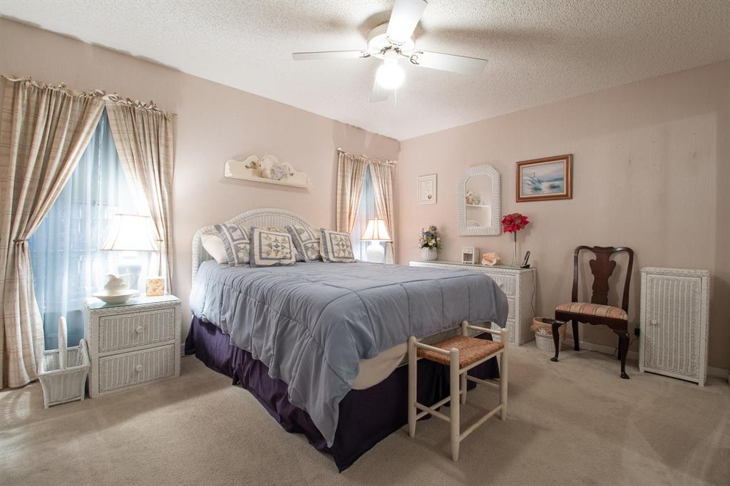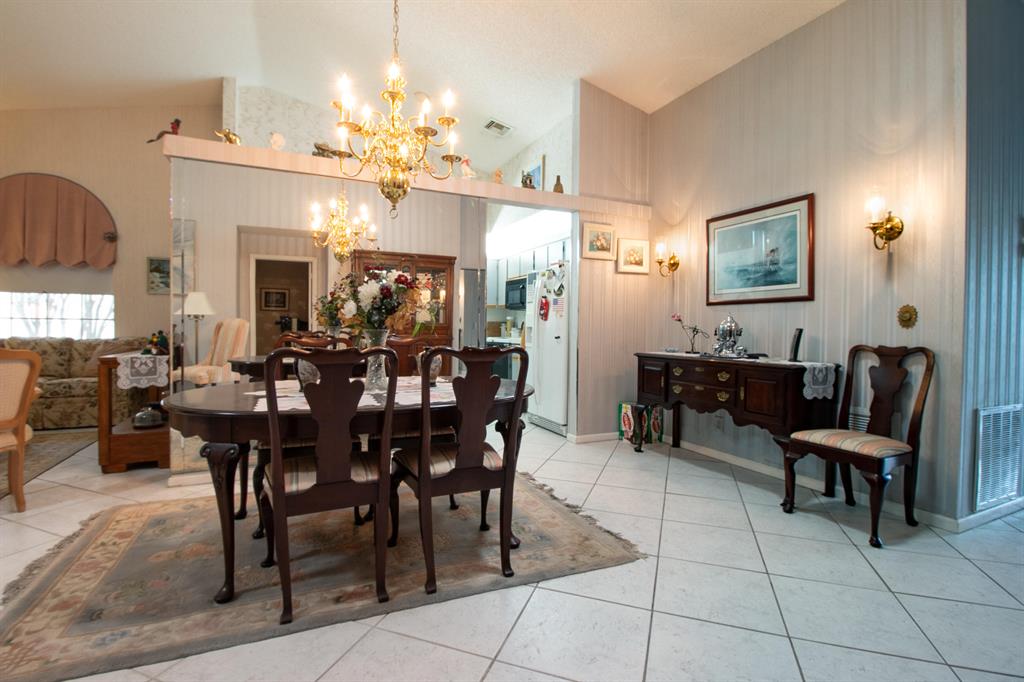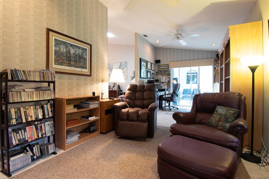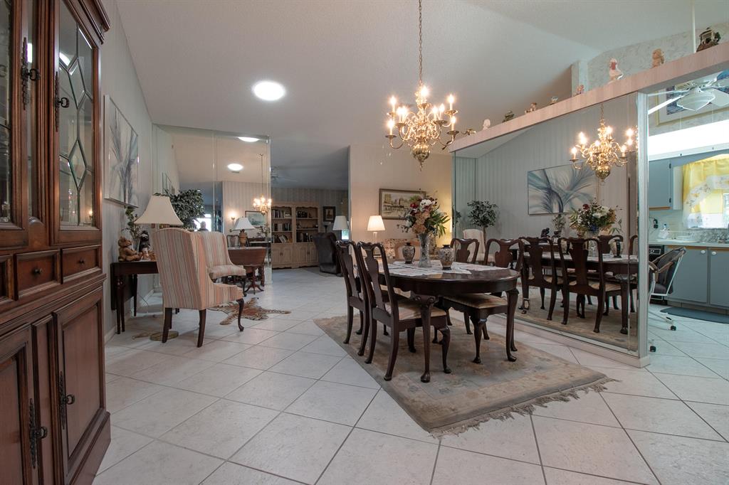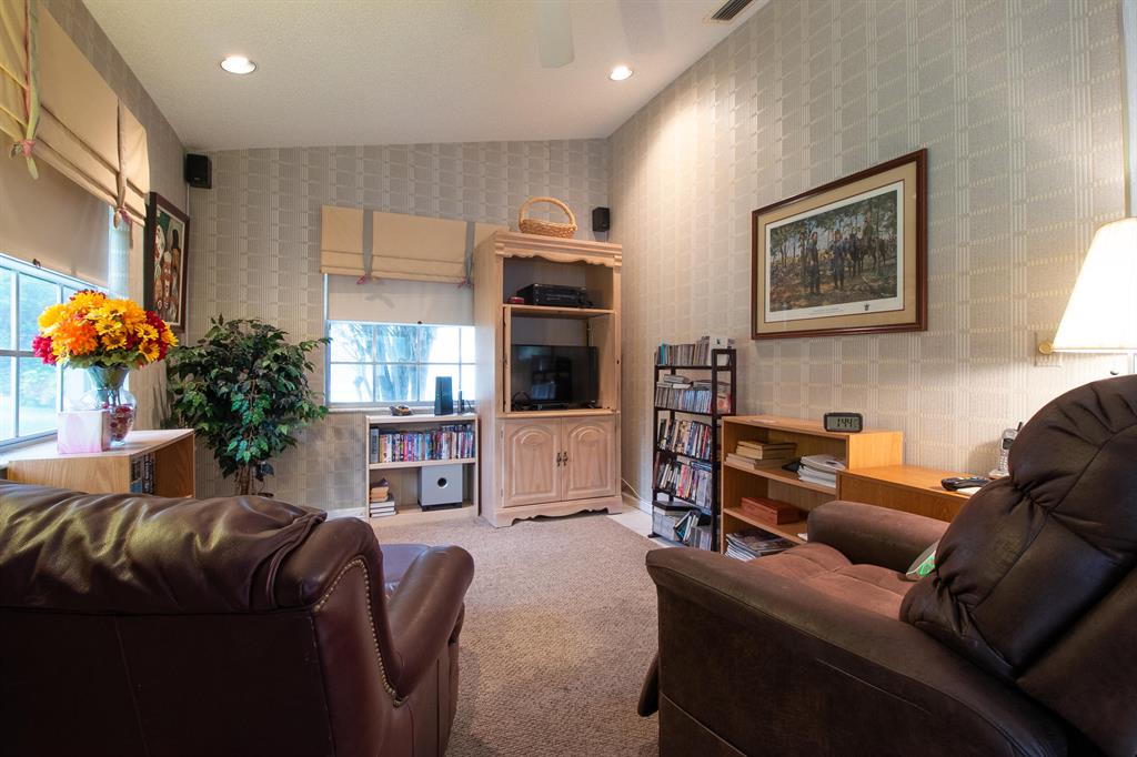 Spacious villa with 2 car garage. Family room, formal living room and dining room. Large bedrooms. Walk in closet in master. Double sinks in master bath. Skylights provide natural light. Screened patio that over looks peaceful nature preserve. Great community with FREE golf, clubhouse, entertainment, pool, tennis, fitness, miniature golf and more. 24 hour manned gate. Exterior paint and lawn maintained by the HOA. Cable included.