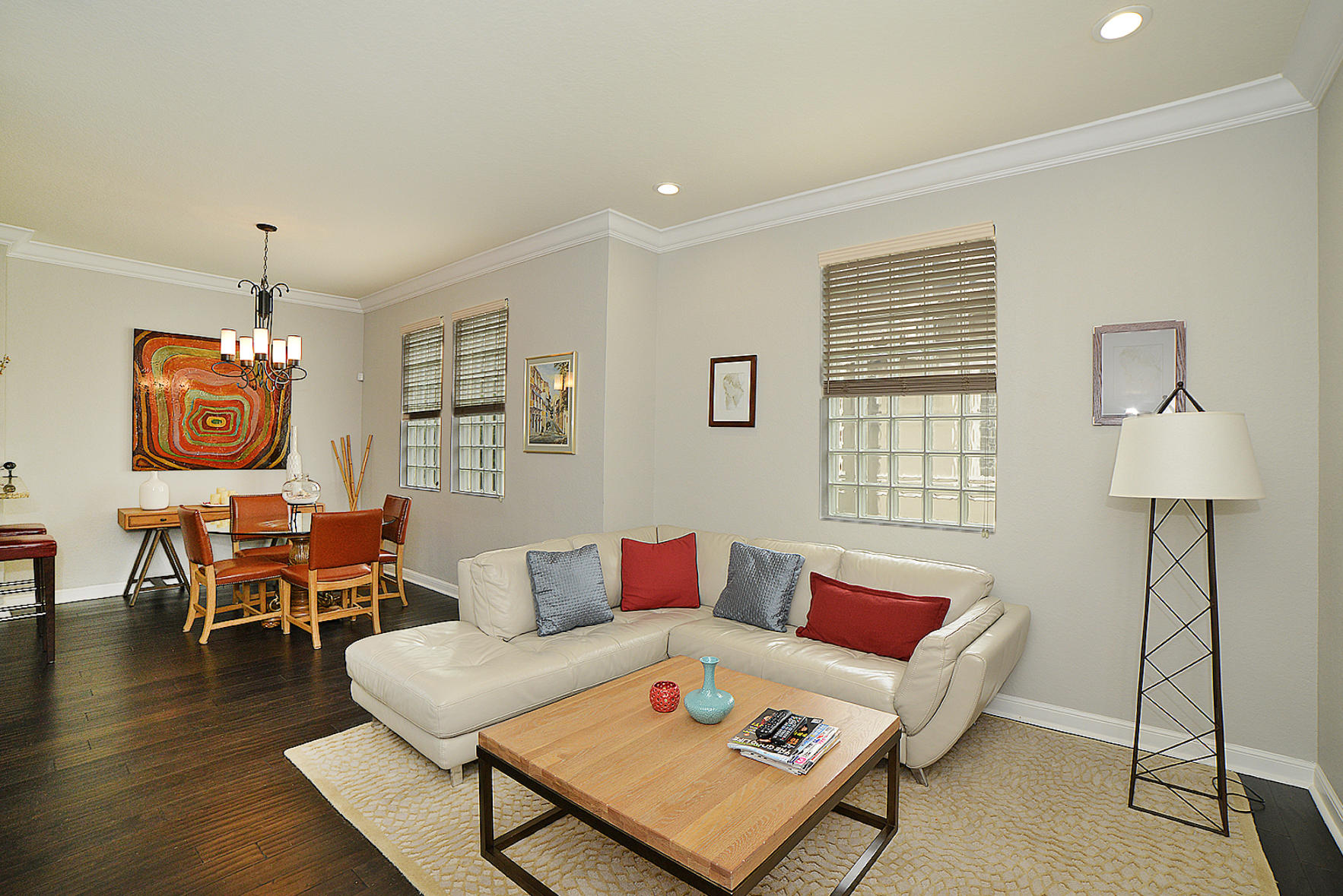 MUST SEE!! PRICED TO SELL!! Corner 2/2 unit fully renovated with a 2 car garage! Hardwood floors, LED recessed lighting. Marble kitchen floors, granite countertops with travertine back-splash, SS appliances. Porcelain tiled bathrooms with new toilets and built-in vanities from Restoration Hardware. Laundry room has built-in cabinets and stackable full size brand new W/D. Custom blinds through-out. Impact windows. 12 foot ceilings with crown molding base boards and ceiling! Nest thermostat and brand new bluetooth garage door opener! 24 hour fitness center and resort style pool. Close to Palm Beach Outlet Shops, I-95, Cityplace, downtown WPB and minutes to WPB airport.