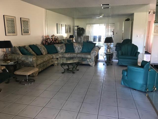 Large corner 2/2 villa with formal dining room, ceramic tile thru out,. accordion shutters all around, 5 ceiling fans, and directly across from satellite pool on desirable Lake Evelyn Dr. Fully furnished, 2014 AC and condenser. Parking space in front of unit, walking distance to both clubhouses and courtesy buses to all shopping and medical plaza's. Minutes to the Outlets, malls and beaches. 1.25 miles to turnpike and just a short more to I95.