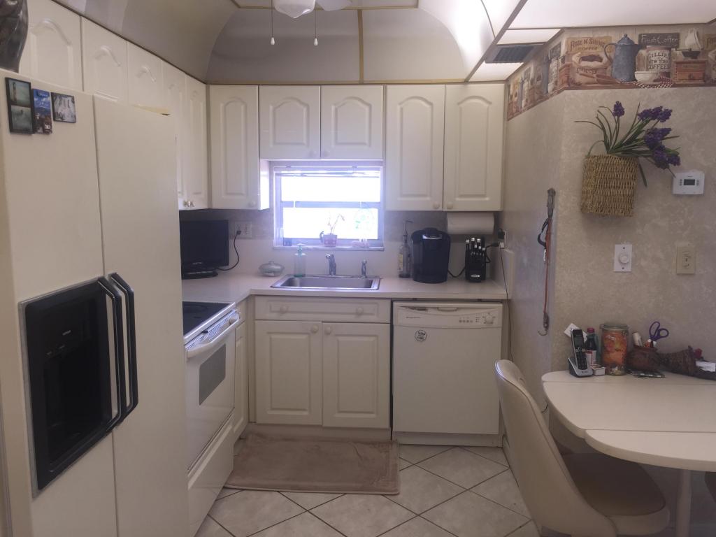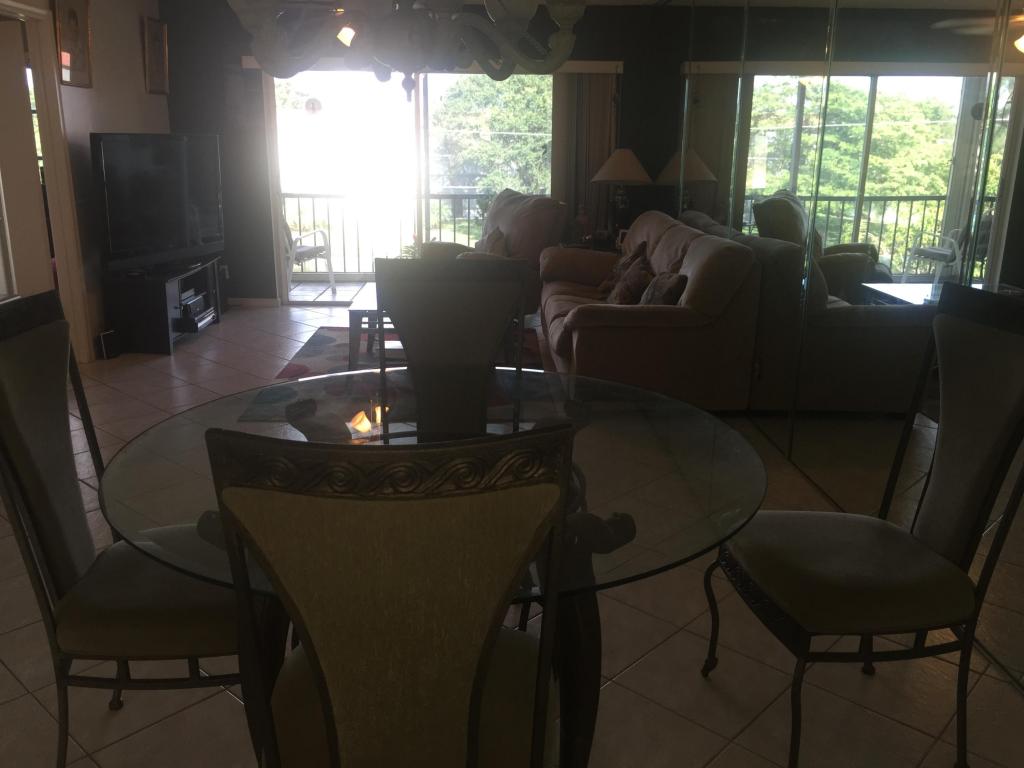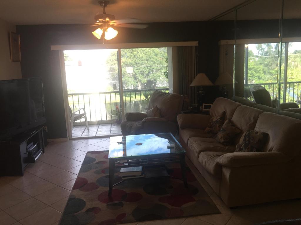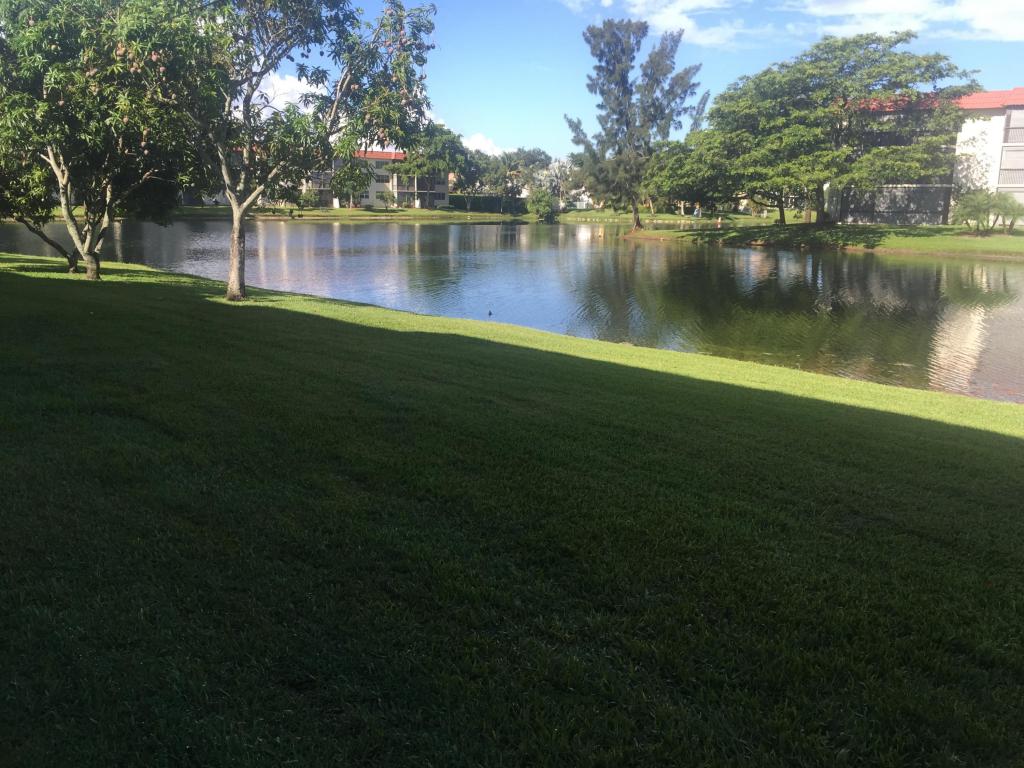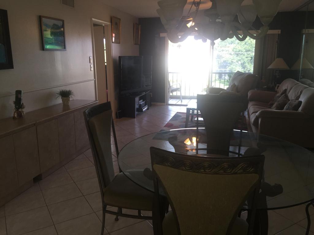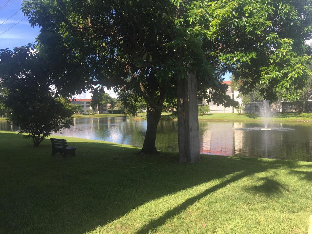FREE GOLF! PAID-UP RECREATION LEASE! COUNTRY CLUB LIVING STYLE! 2 BR/2BA. Relax overlooking large, beautiful lake and fountain. Tastefully decorated (furniture negotiable) with newer AC and Water Heater. (Appliance/AC service contract transferrable). Updated eat-in-kitchen, tile on angle. Mirrored walls add to open feeling. 2 huge walk-in closets. True Hurricane Shutters on patio. 14 Tennis Courts, 7 heated pools, theater, fitness center, restaurant, 24HR Guard Gated Security + Security Patrol. This one stands out!