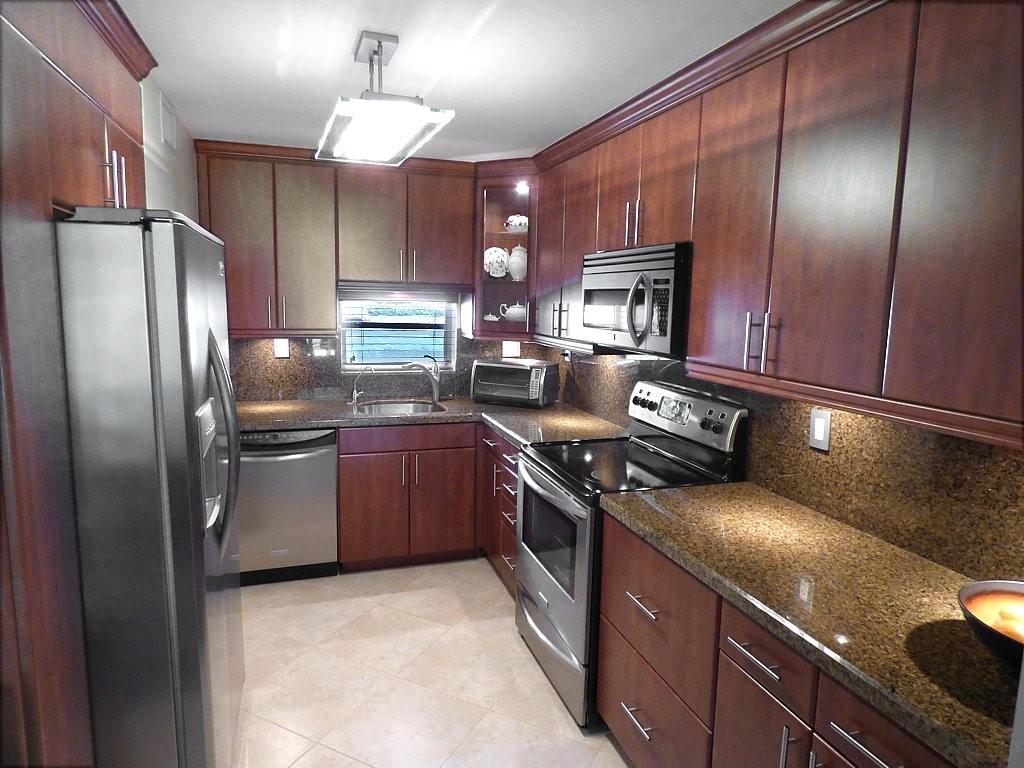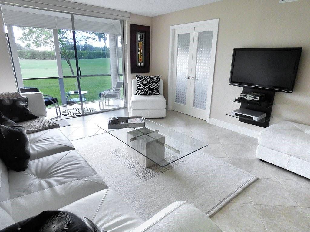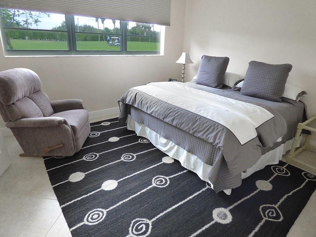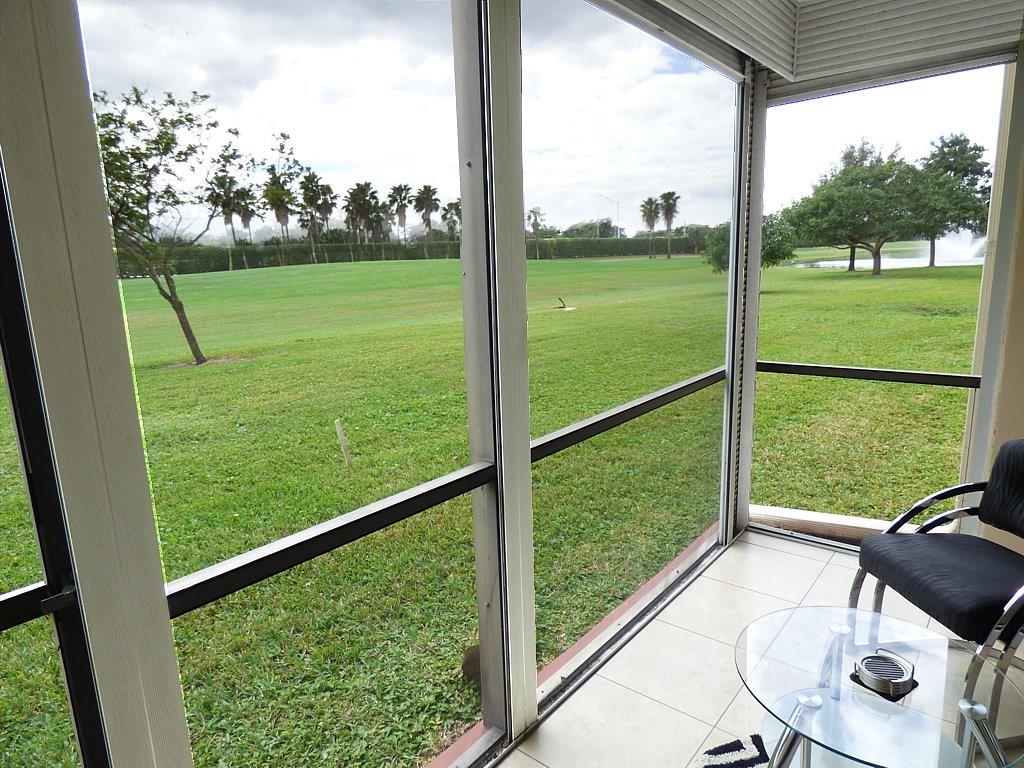 Gorgeous ground floor, full 2 bed designer apartment. Completely renovated. Custom wood & granite kitchen with raised ceiling & open bar. 18" diagonal tile. Granite & tile bathrooms. All-in-one washer dryer. Replaced air conditioning, tankless hot water. Impact bedrm window. Power patio shade, Custom closets. New doors. Furniture negotiable. PGA golf view. Paid up rec lease. Free golf , 14 tennis cts, 7 pools, fitness ctr, restaurant , 24 hr security. HOPA verified . See Broker Rmks below