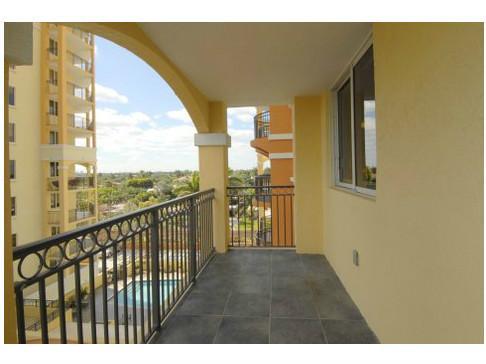 Stunning light bamboo floors throughout and with ocean views from the living room. 2 bedroom split with Den (or 3rd bedroom). Open kitchen, granite counter tops, marble bathrooms, convenient laundry closet . Newly painted entry and living room. Resort-li ke living impressive lobby, 2 pools & Ocean Cabana Club on deeded beach, fitness center, billiards, sports lounge and bike storage. A must see!!! You will love this one !!! 2 pets ok. Easy to show!!