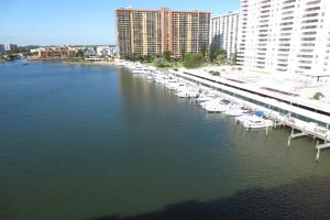 Direct Intracoastal Unit. Lower penthouse (8th floor). Laminate wood flooring and tile thru out. No carpet. Two Bedrooms/Two bathrooms, laundry room, both bedrooms and family room all have views of intracoastal waterway, impact glass windows & sliding door, private patio, upgraded kitchen, walk in closets in both bedrooms. Family room & dining room light fixtures excluded. New air conditioner in 2013 & new flooring in 2011. Resort style amenities include pool, billiard room, business center, gym, fitness studio, bar, club room, on site management office, security. Norman S. Edelcup (elementary school), Highland Oaks Middle School, Alonzo & Tracy Mourning Senior High Biscayne Bay Campus. No weight limit for dogs!
