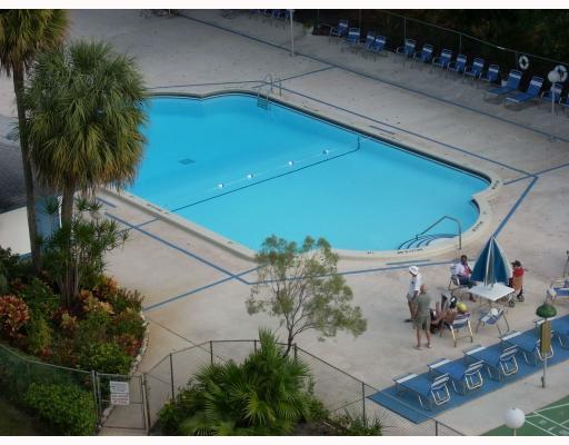 All ages welcome for this unique 2000+ sf penthouse double unit with high ceilings and spectacular views . Fabulous floor plan needs updating to make it your own. Two master bedrooms with 2 full baths. Foyer entry leads to huge living area and separate dining area. Open eat-in kitchen. Third room can be used as den or closed for 3rd bedroom. Master bath has separate tub, shower and bidet. Perfect for snowbird couples or extended families. W/D. 2 deeded pking spaces. NO LEASE/NO PETS. Show assist.