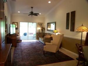 Well maintained 2/2 villa + den & garage in active 55+ community. Nice curb appeal! Accordion shutters, screened entry & upgraded glass front door! Tiled living areas including den which is currently being used as a formal dining room. Crown molding, chair rails & vaulted ceilings. Kitchen opens to great room & den. Walk in shower & walk in closet in master. Hunter Douglas window treatment on great room sliders opening to screened, covered & tiled patio plus an open patio! Private garden view! Resort style clubhouse. Full time social director, fitness center, aerobics room, billiards, card & game rooms, lap pool, aqua-track, family pool, hot tub, tennis, boccie, shuffleboard and more! Clubs, shows, dances! Close to shopping, dining & entertainment. Baywinds is a pet friendly community