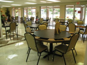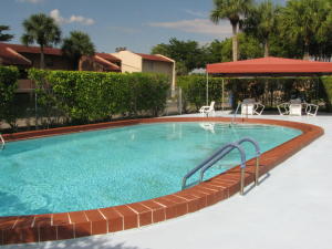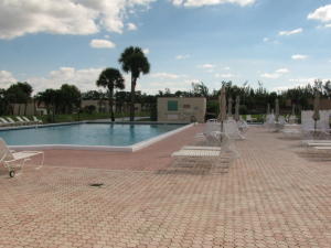 Corner villa with 2 bedrooms and 2 bathrooms. Active clubhouse, walk to pool. Only feet away from laundry and bus stop. New A/C, new water heater. Lovely location on the water, sip tea on your screened patio to the serene sound of the fountain.Monthly dues include water,guarded gate,lawncare,pool,roof and common areas.Clubhouse,gym,cafe,lounge,auditorium,shuffleboard,many activities.All measurements are approximate. Property being sold 'as-is with right to inspect'. Light fixture in dining room does not stay.