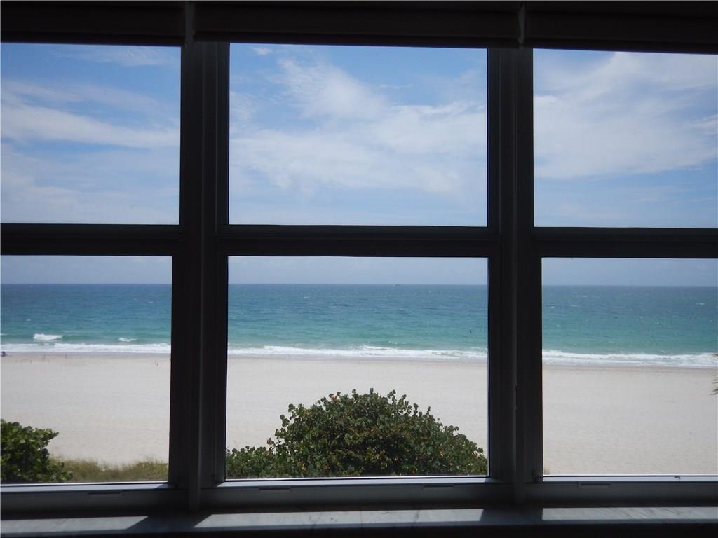 Gorgeous views from every room! Wake up and watch the sunrise on your oceanfront balcony! Beautiful wood floors in main living areas. Impact windows and doors. Fantastic split bedroom floor plan with large walk-in closets and private baths.Murphy bed in front room to stay with unit. Many amenities featuring a fitness center, game room, library, large oceanfront common rooms, kitchen, pool and shuffleboard. Great location within walking distance to shopping, entertainment and dining. Northeast corner unit.