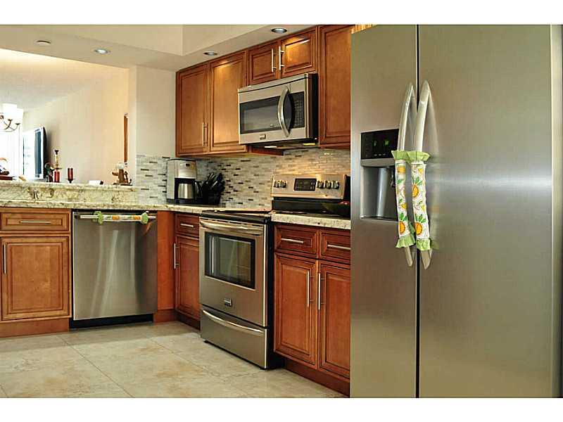 Beautifully renovated 1600+ SF condo with wide open floor plan. The kitchen is all new with gorgeous granite, stainless steel appliances and high quality cabinetry. Extra 1/2 bathroom + large private laundry rm. 2 Balconies with tremendous ocean views. Master and guest bedrooms have huge walk in closets. Brand new central a/c and gorgeous neutral tile thru out. 1-Year Warranty included for the buyer. Beautiful Furniture is negotiable. Garage parking w/ additional storage and secured lobby.