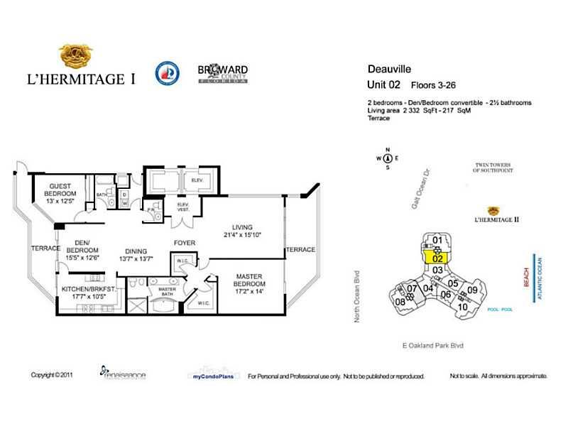 Beautiful Direct Ocean front Condo has just completed renovations including a spectacular new Master Bath featuring a soaking tub, Carrera marble, and contemporary lighting. New sliding modern doors and a Murphy Bed/Sofa allow the den to be comfortably co nverted to a 3rd bedroom. Private elevator entryway, Marble and Wood floors. New w/d & lighting fixtures. L'Hermitage is a pet friendly bldg. featuring 3 pools, cafe, tennis, Gated entrance, valet, concierge, fitness & business center. Easy to show!