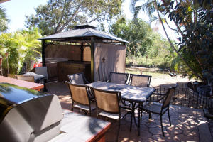 Charming paradise. NO HOA. Located on a canal with a screened gazebo, outdoor kitchen and built in grill, not many villas have a yard. Newer custom kitchen, stainless appliances, wood and glass front cabinets, unique ceiling make this kitchen one of a kind. Fenced area off the kitchen to enjoy your morning coffee.Laminate flooring in main living areas. Vaulted ceilings. Newly remolded bathrooms. Windows in bedrooms are impact windows. Large master, with walk in closet,both bedrooms carpet only a year old. Laundry room with full size washer and dryer only 2 years old. Knock down ceilings, security system. this is a great place! MUST SEE!