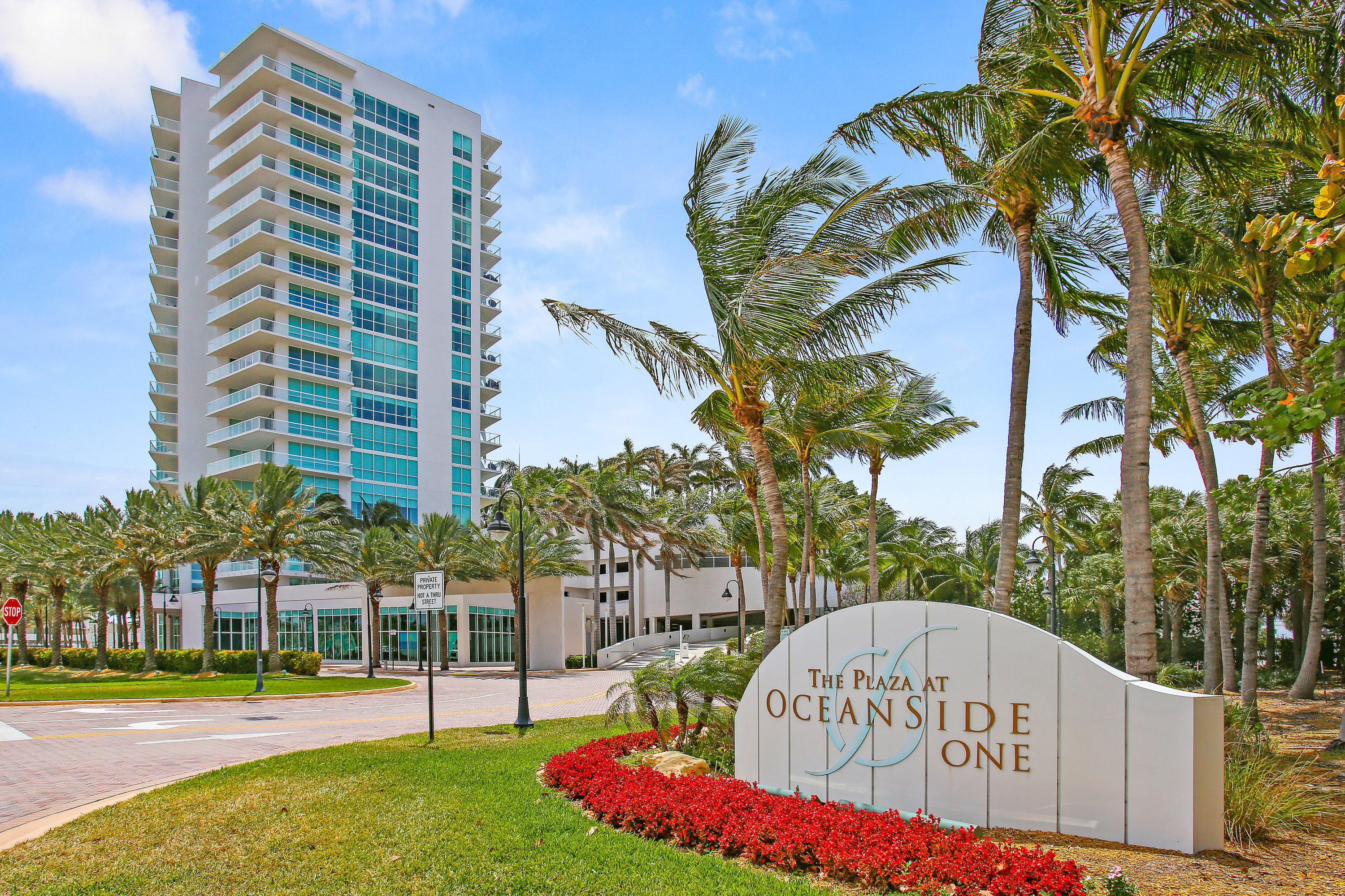 Welcome to the Plaza at Oceanside Luxury Lifestyle with Gorgeous Intracoastal/Pool/Marina/City/Sunset Dream Views ! This 2 bdrm/2 bath split design sky residence is immaculate and stylish. The foyer entry leads to a designer furnished entertainment/living area designed to capture the beautiful panoramic view. The European designer kitchen overlooks the living area that opens to the huge terrace. To the right, the expansive master suite opens to the terrace and has two closets and a luxurious bathroom with Roman tub, shower and two-sink vanity. The Plaza features unparalleled resort amenities on a 40,000 sq. ft. 4th floor level with lush, tropical landscaping surrounding a huge zero-entry infinity edge pool with new outdoor grill kitchen, trellis dining area, hot tub, and two tennis