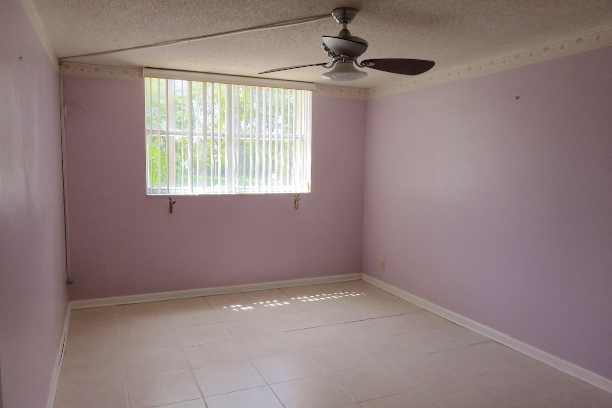 Spacious, second floor, one-bedroom one-bath condo with west-facing terrace. Large bedroom, kitchen with pass-thru to living/dining area, 4 closets (2-walk-ins), hurricane shutters. Laundry and Bonus Storage area in building. Amenities include Pool, Tennis, Clubhouse, Fitness area, Sauna, Barbecue and more. Close to I-95, Palm Beach Outlet Mall, Target and PB International Airport.