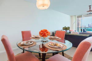 From the moment you enter into Aventura's Best Kept Secret with panoramic views of the ocean and bay creating a true majestic experience! This 2 bedroom + A Den -2.5 bathroom most desired "17" line unit has had absolutely No expense spared and unique upgrades such as the glass pane French door that has been added to the den area for use as a 3rd bedroom! Step into the true Chef's kitchen with granite countertops, stainless steel appliances, and Italian/European Cabinetry keeping with an open feel as it overlooks the family-dining room areas as well the picturesque water views! Sleek marble flooring throughout, an en-suite Guest Bedroom and bathroom strategically placed to create a true Split Floor Plan! Enjoy a spa like experience each day as you enter the Master suite you're greeted with