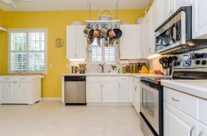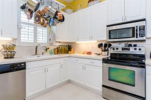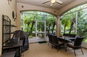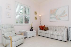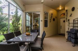 Spotless and spacious villa with a beautiful white oversized kitchen with under mount lighting, ceramic counters and new stainless steel appliances that conveniently opens to the lushly landscaped private patio for entertaining or enjoying the outdoors. New a/c and complete new vent system, and new washer dryer. Completely tiled throughout. Bright and open feel with vaulted ceilings and plantation shutters. Third bedroom has French doors and makes an excellent office. Maintenance fee includes exterior painting approximately every 5 years and also power washing of the roofs!!