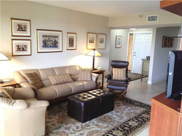 Beautifully & totally remodeled (2008), corner unit. Granite countertops in kitchen & baths. Entertainment center/murphy bed in living room for extra sleeping space. Impact windows. View of ocean, intracoastal & city. Building on the sand. Split bedroom plan. Formal dining room could be used as den, office or make a 3rd bedroom. Breakfast area off living room & kitchen. Laundry/storage room in unit. Beachfront pool. Fitness center, sauna, community room w/kitchen facilities. Small pet welcome..