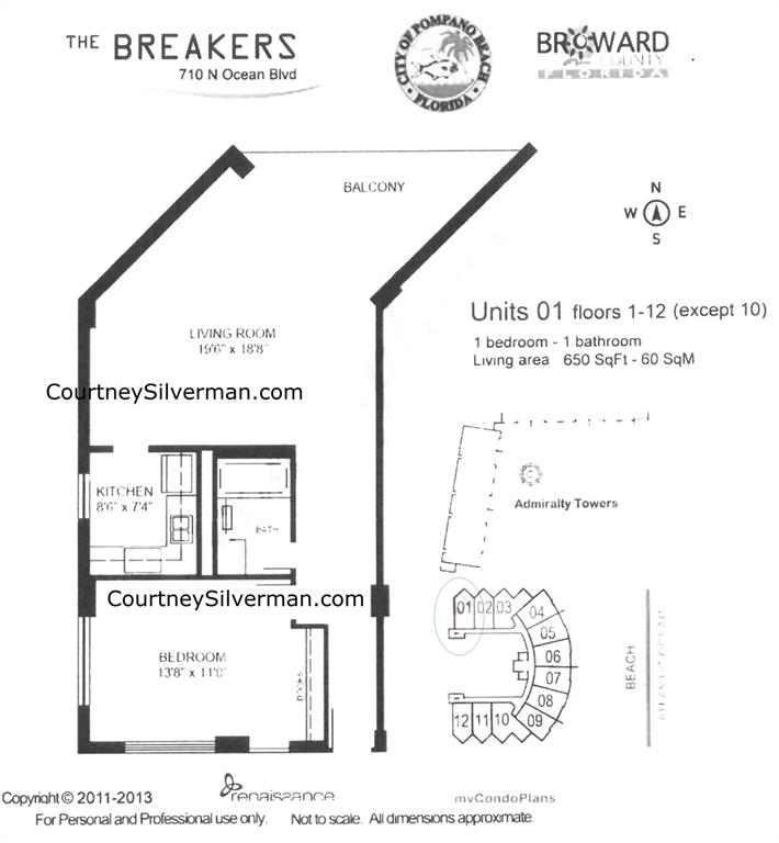 Oceanfront Condo - Everyday is a getaway! Amazing Value for a 1-Bedroom 1-Bath Condo in Oceanfront Building. Corner unit, impact windows. Your 4-legged family members are welcome, 2 pets under 20 lbs allowed. Washer/Dryer can be installed in the unit. Relax at the Heated Pool. Enjoy your Private Beautiful Beach daily and watch amazing sunrises and sunsets! The Breakers Condominium offers the lowest maintenance in town with full cable w/HBO. Unit can be rented immediately after purchase - 2x a year for a minimum of 90 days, shuffleboard court, pool, surf & sand, library, lounge/club room, bbq/picnic area. Concrete restoration and 40-year inspection done. Area redevelopment makes this a great future investment. Property on north side is the new Sabbia Beach condo.