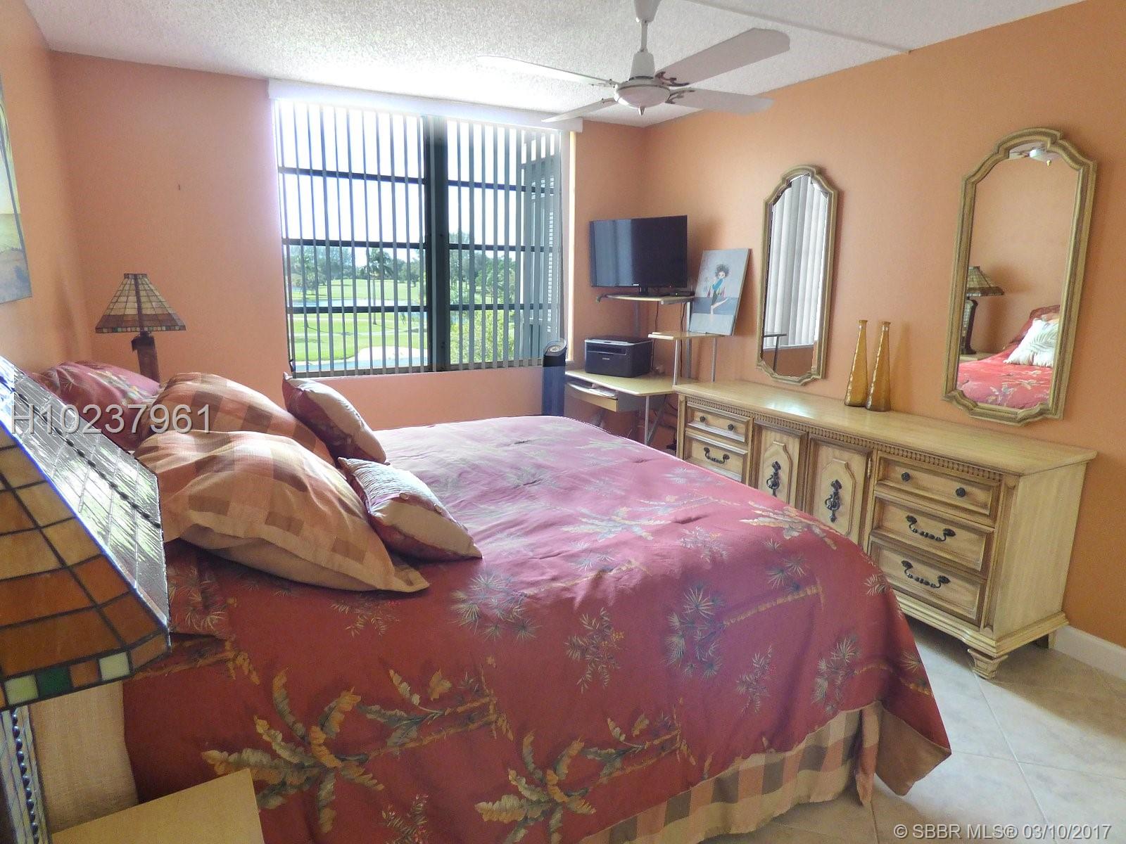 Nicely decorated and furnished 1 bed unit with sprawling golf, water and pool views. New dome kitchen with stainless appliances and refinished cabinets. 17" tile, including patio. Master bath redone. Xtra storage and built-in closet. Storm shutters and new screens Paid up rec lease. Free golf, 14 tennis courts, 7 pools, theater, fitness center, restaurant , 24 hr security,. Assoc. represents housing for older persons (HOPA).. *** IMPORTANT! See Broker Remarks below for occupancy qualifications.