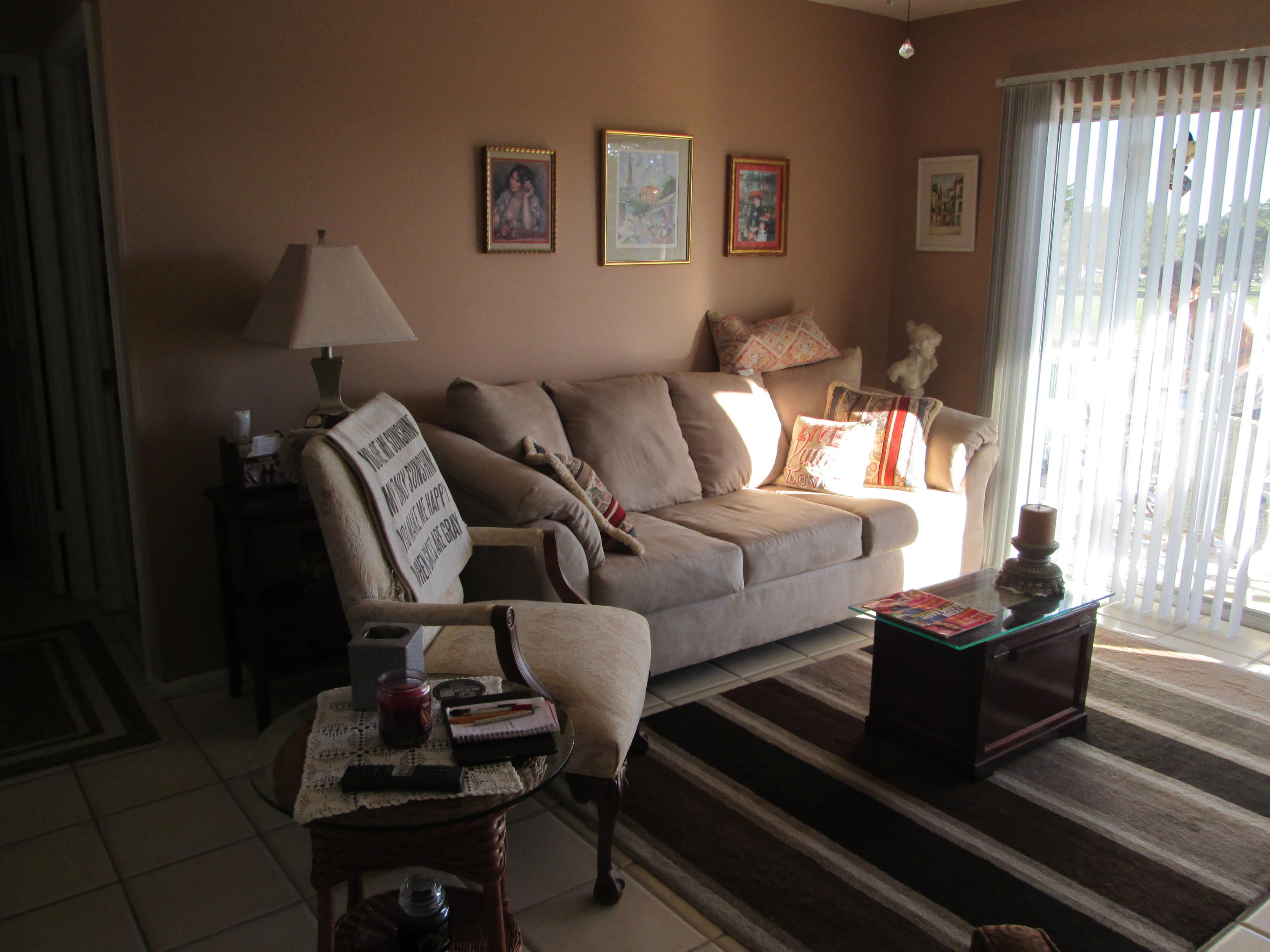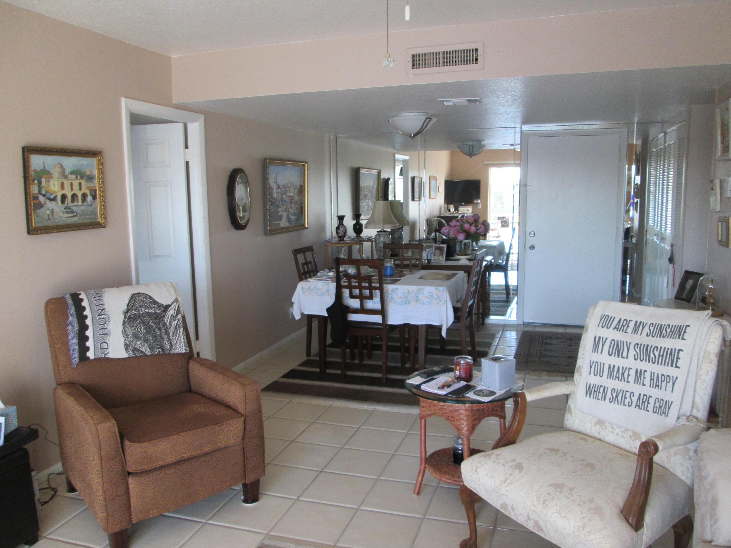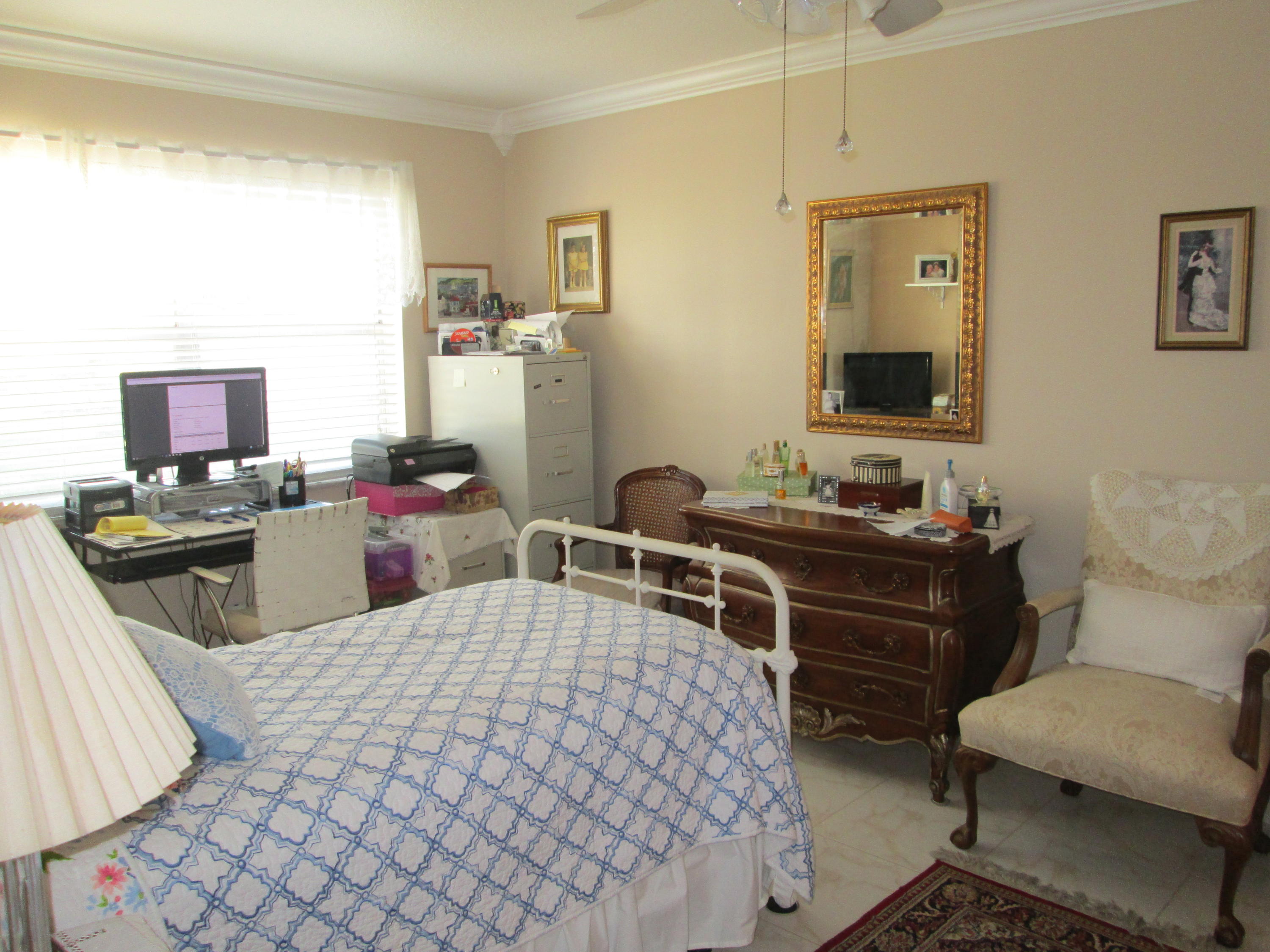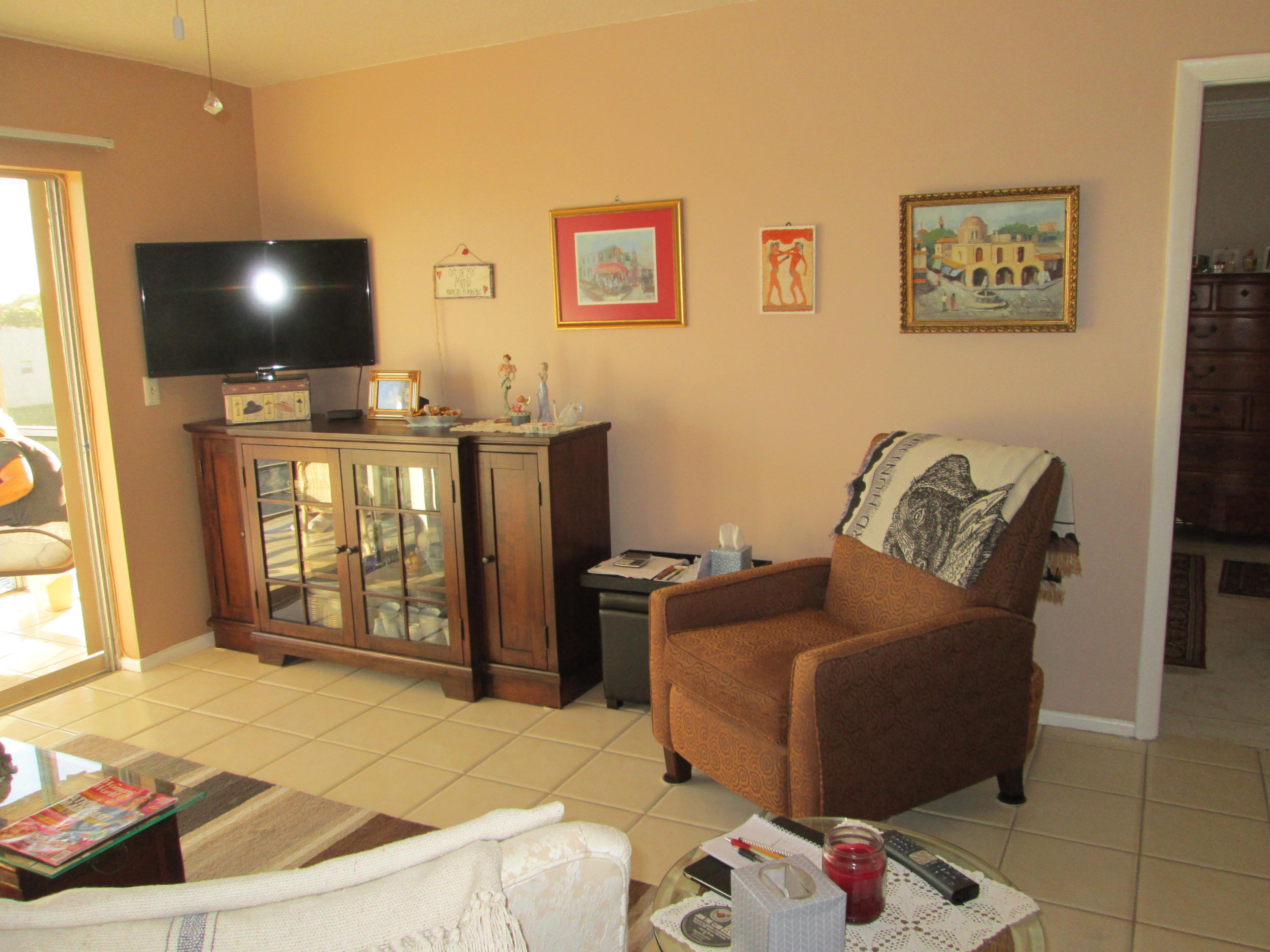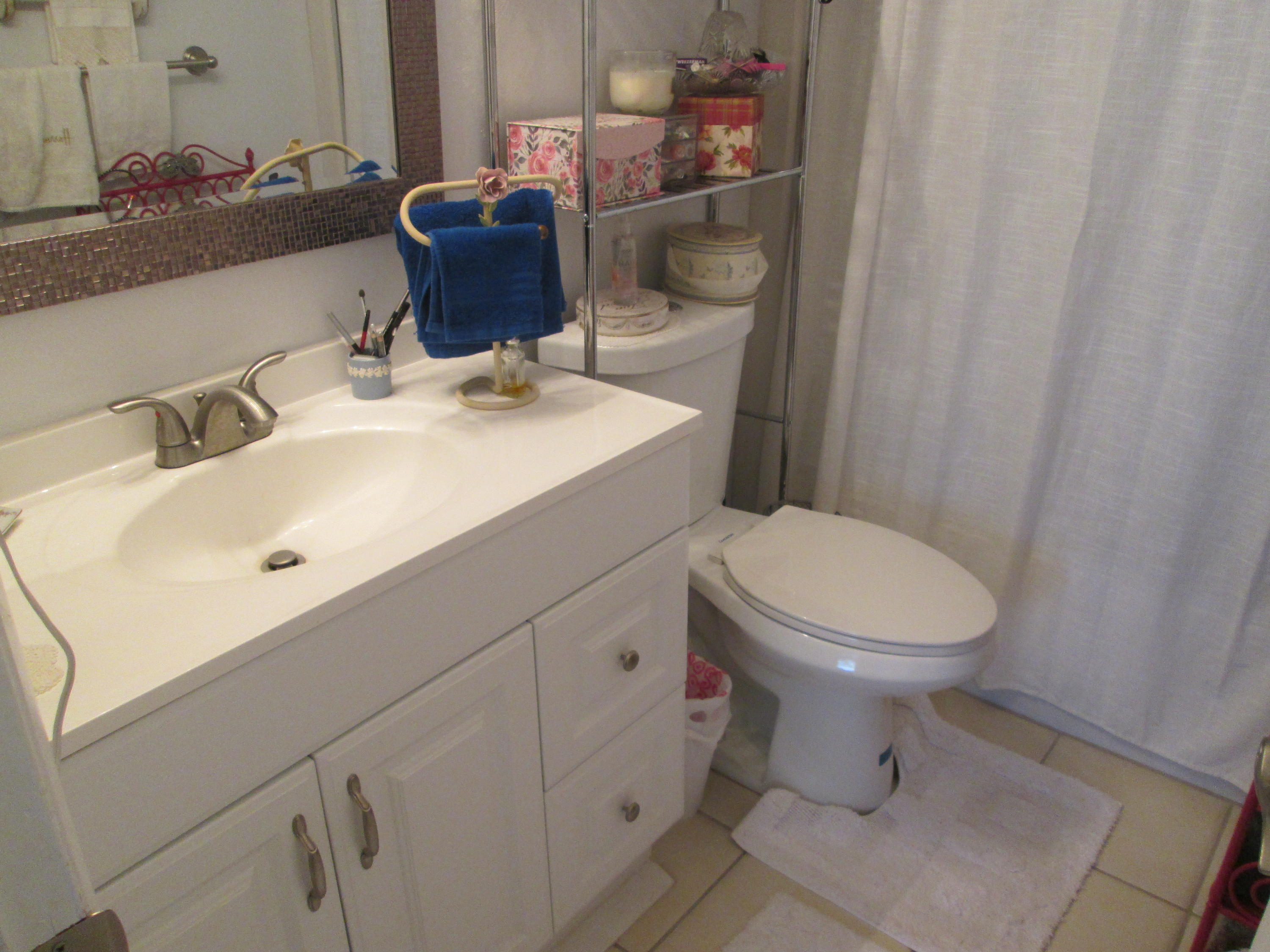Stunning updated 2/2 with Lake view. New wood cabinets, solid surface molded counter, dbl crown molding in kit, appliances 1 yr old, raised panel doors w/new hardware, crown molding in master BR, new vent fans, Accordion Shutters and all new screening on patio. Front loading W/D. New knock down ceilings. (no popcorn) All tile floors. Short walk to Clubhouse. 24/7 guard gated active community w/full time social director. Courtesy Bus 2 days a wk to grocery, malls, shops etc. Close to shopping and approx. 15 min to downtown WPB, Kravis Center and City Place.