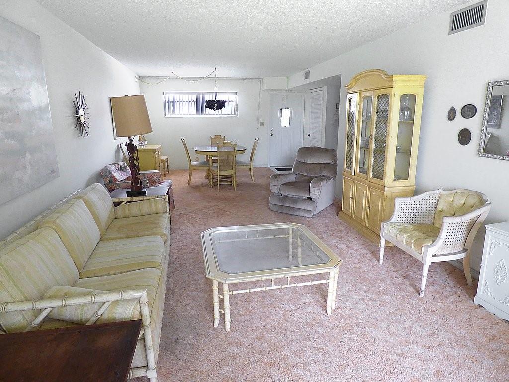 Near clubhouse. Original 1 bed 1-1/2 bath unit in cul-de-sac wiht golf view. Make this fixer-upper your own. Paid up rec lease. Free golf , 14 tennis courts, 7 pools, theater, fitness center, restaurant , 24 hr security,. Assoc. represents housing for older persons authorized (HOPA).. *** IMPORTANT! See Broker Remarks below for occupancy qualifications.
