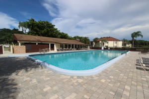 Desirable "Pine Ridge at Haverhill"; 2 Bedroom, 1 Bathroom condo perfectly situated in a cul-de-sac section of this multi-age & gated community. Recently renovated & freshly painted with neutral colors. Utility/Laundry room off of kitchen, complete with washer & dryer. New A/C in 2015. Tile & wood laminate flooring throughout. Tiled & screened-in patio. Ready to move in today! Amenities include: club house, tennis courts, racquetball courts, bocci & shuffle board. Pine Ridge at Haverhill is in close proximity to shopping, schools & only 15 minutes to CityPlace, the Palm Beach Outlet Mall & the Palm Beach International Airport.