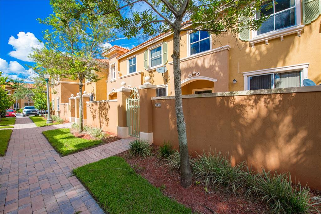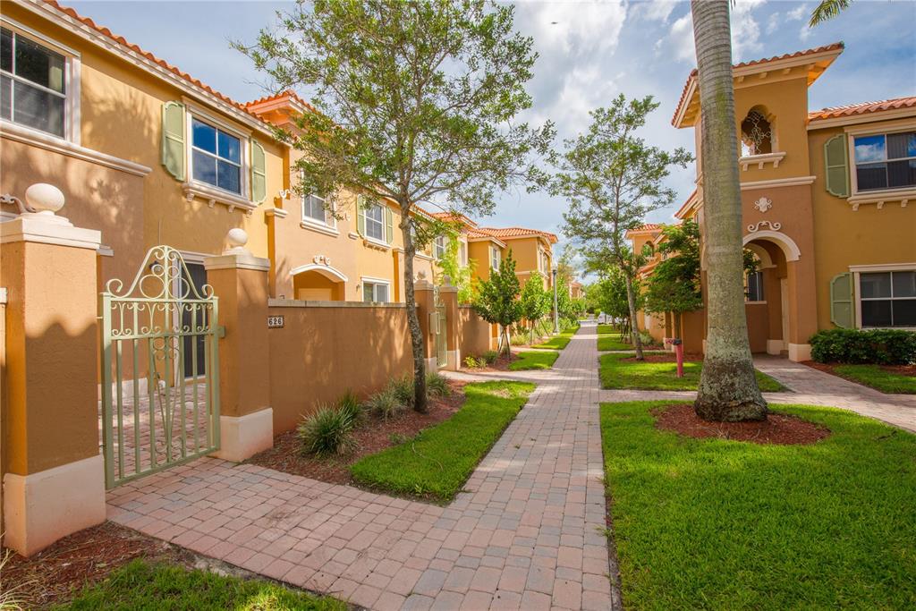 Immaculate! In gated Mediterranean styled community. Ceramic tiles downstairs, wooden stairs thru to landing bedrooms & closets. Master has a huge walk in closet. Freshly painted to accentuate the flooring, custom mirror in dining room & modern light fix tures throughout. Beige kitchen appliances, washer & dryer. Spacious brick paved courtyard in front to relax and entertain, large enough for children to play, yet enclosed and gated for privacy. Walk to pool. Close to gym, restaurants & mall.