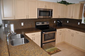 LARGE END UNIT 3/2 VILLA WITH LOTS OF WINDOWS,MASTER BATH HAS CUSTOM SAFE STEP WALK IN TUB WITH JUCAZZI WITH LIFETIME WARRANTY. A GARAGE AND MANY UPGRADES! CATHEDRAL CEILINGS, TINTED WINDOWS, WHOLE HOUSE WATER FILTRATION SYSTEM, NO CARPET- TILE AND LAMINATE WOOD FLOORS, UPGRADED CABINETS, CEILING FANS, UPGRADED TILE IN BATHS, GRANITE COUNTER TOPS, STAINLESS STEEL APPLIANCES, EXTENDED BACK-SPLASH IN KITCHEN, SCREENED ENTRY & ENCLOSED PATIO WITH PRIVATE VIEW! ALARM SYSTEM IS MONITORED. BAYWINDS IS AN ACTIVE COMMUNITY. 55+. ENJOY SOCIALIZING AT THE RESORT STYLE CLUBHOUSE WITH AN AQUA-TRACK, 2 POOLS, A HOT TUB, 6 HAR-TRU TENNIS COURTS, BOCCI BALL, SHUFFLE BOARD, FITNESS CENTER, CARD ROOMS, BILLIARDS AND MUCH MORE! CLOSE TO SHOPPING, DINING, ENTERTAINMENT, AIRPORT TURNPIKE & I-95