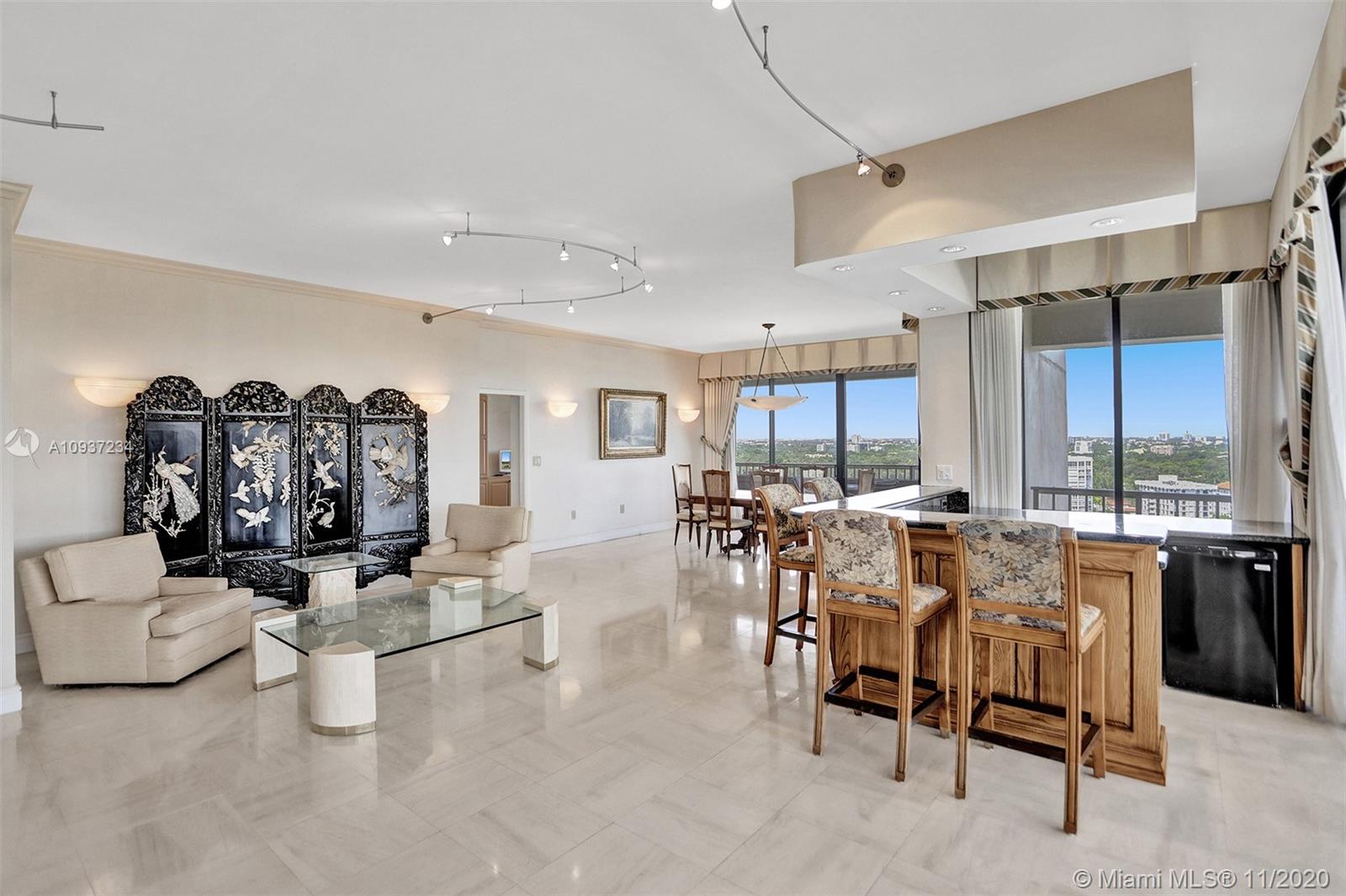 Live high in the sky! This spacious 3 bedroom, 2.5 bathroom Penthouse offers views of Downtown Miami and Coconut Grove skyline, Grove Isle marina and Biscayne Bay. The high ceilings and abundance of wall space will attract any art collector. While natural light pours into this residence, other features include an entry foyer, huge living room with a custom built-in bar and a spacious kitchen with an eat-in breakfast area. The main bedroom has dual walk-in closets and en-suite bathroom with double sinks, separate tub/shower and bidet. This residence is waiting for someone to turn this incredible space in to their home. Wake up each morning to the sun rising over the bay. Enjoy watching beautiful sunsets and the magic city light up at night. Grove Isle offers full services and amenities.
