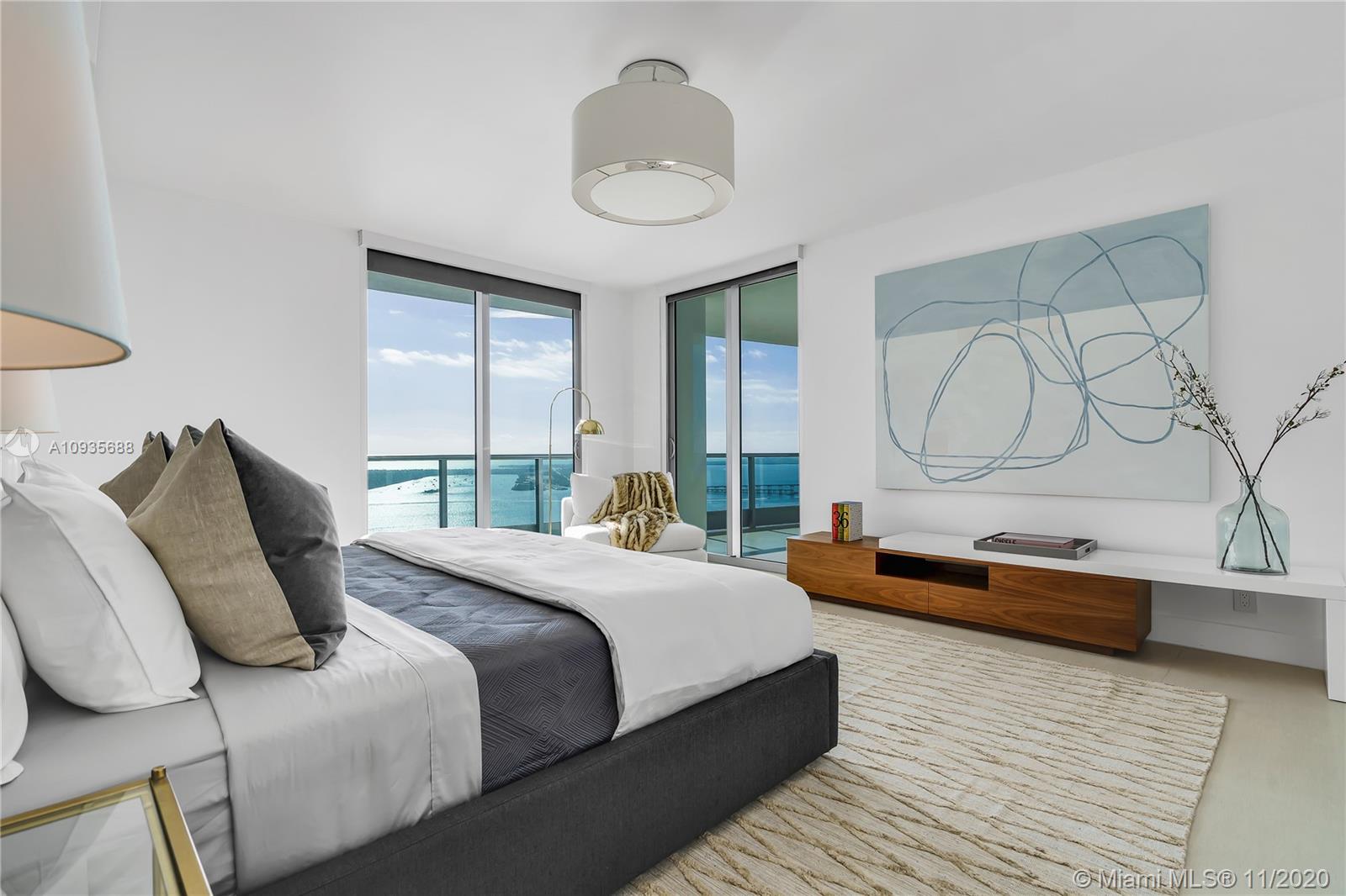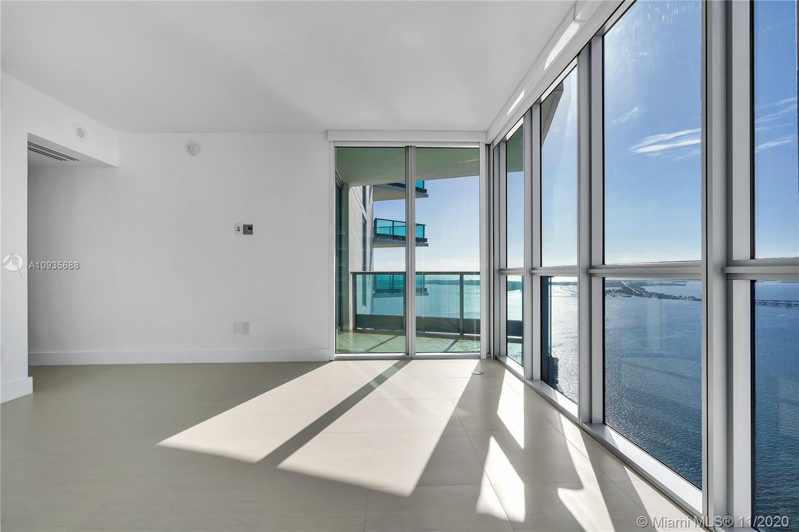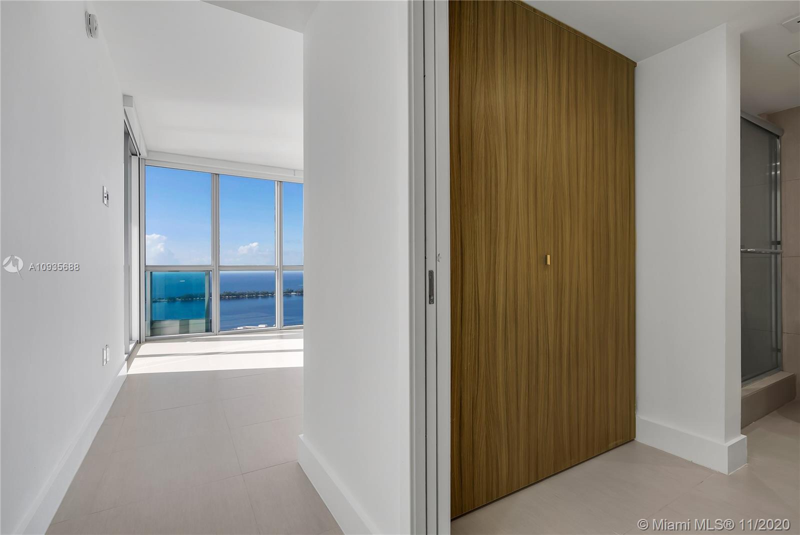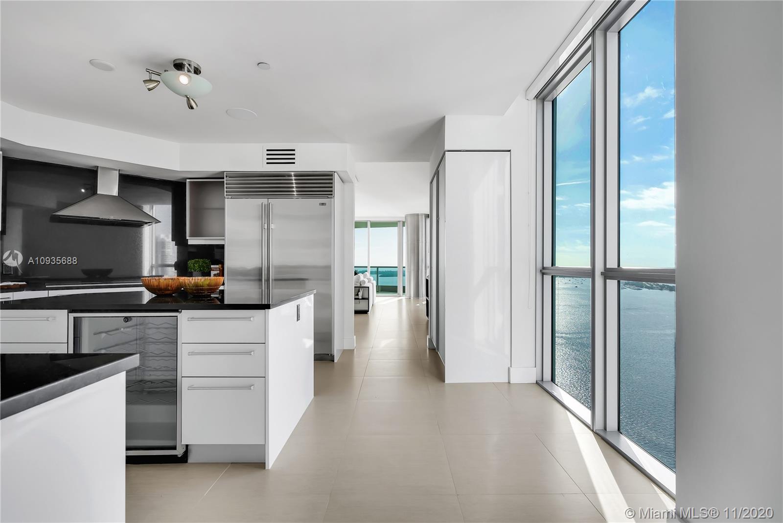 Breathtaking water views from this spacious home in the sky with private elevators! A must see! Featuring 4-bedrooms & 4.5 baths, this Southeast corner unit has unobstructed breathtaking direct water and city views. This home flows all the way from the east to the west of the building and provides you with 270 degree views. This light filled home features modern beige tile floors, gourmet/ Italian cabinetry with stainless steel SubZero refrigerator and Miele appliances. Three balconies with panoramic views. Two parking spots plus free valet services are also included. The amenities are first-class offering a Full Gym, Health Spa, Club Room, Roof-top Party Room, infinity edge waterfront pool, cabanas & jacuzzi. Vacant, easy to show!! Will not last! Now accepting Bitcoin.