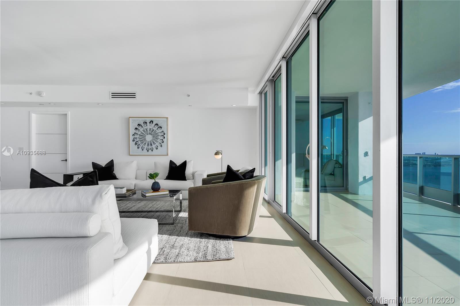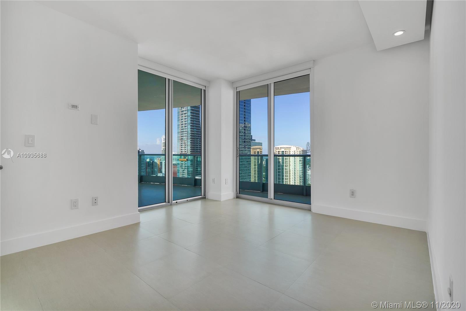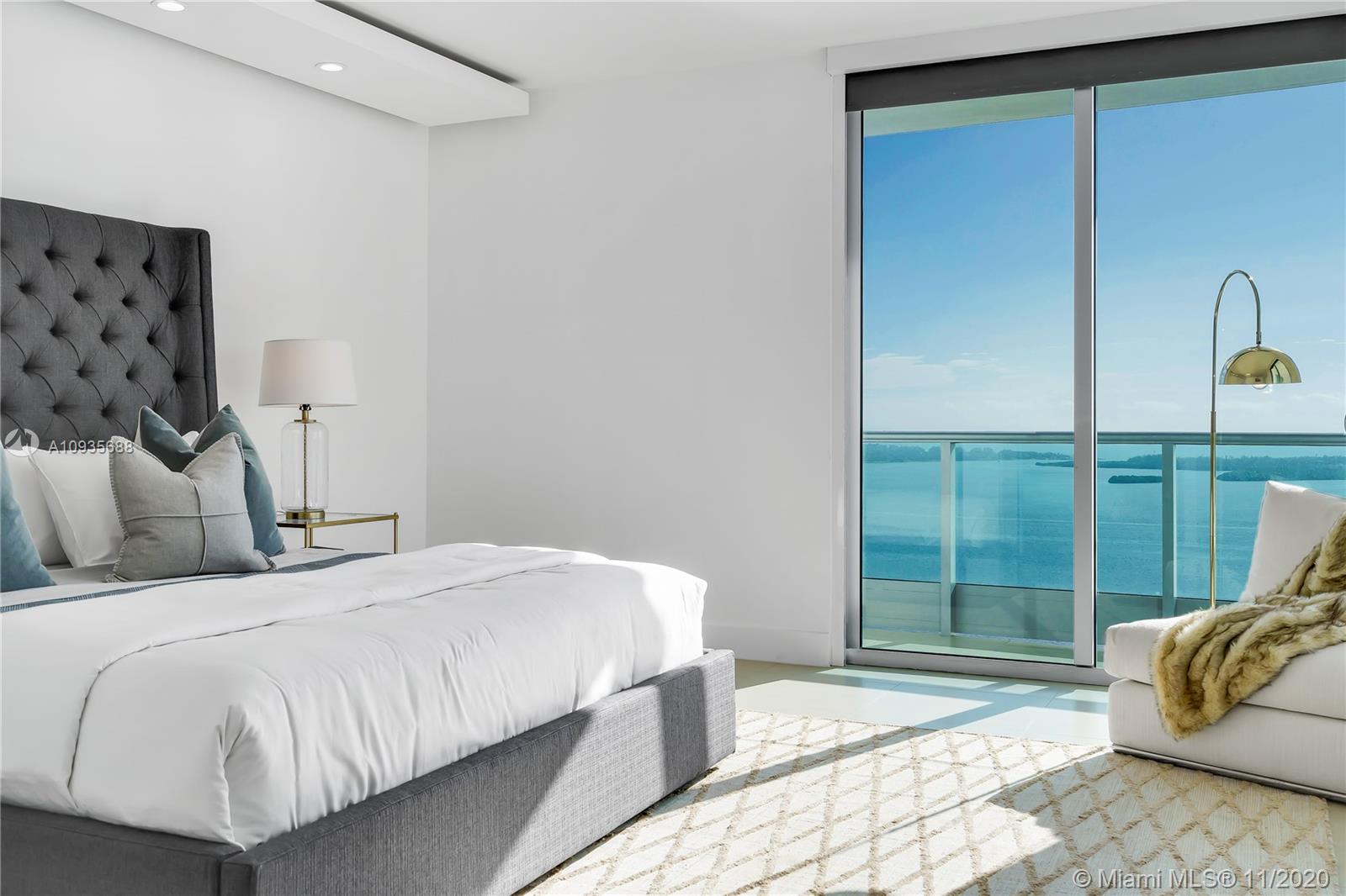 Breathtaking water views from this spacious home in the sky with private elevators! A must see! Featuring 4-bedrooms & 4.5 baths, this Southeast corner unit has unobstructed breathtaking direct water and city views. This home flows all the way from the east to the west of the building and provides you with 270 degree views. This light filled home features modern beige tile floors, gourmet/ Italian cabinetry with stainless steel SubZero refrigerator and Miele appliances. Three balconies with panoramic views. Two parking spots plus free valet services are also included. The amenities are first-class offering a Full Gym, Health Spa, Club Room, Roof-top Party Room, infinity edge waterfront pool, cabanas & jacuzzi. Vacant, easy to show!! Will not last! Now accepting Bitcoin.