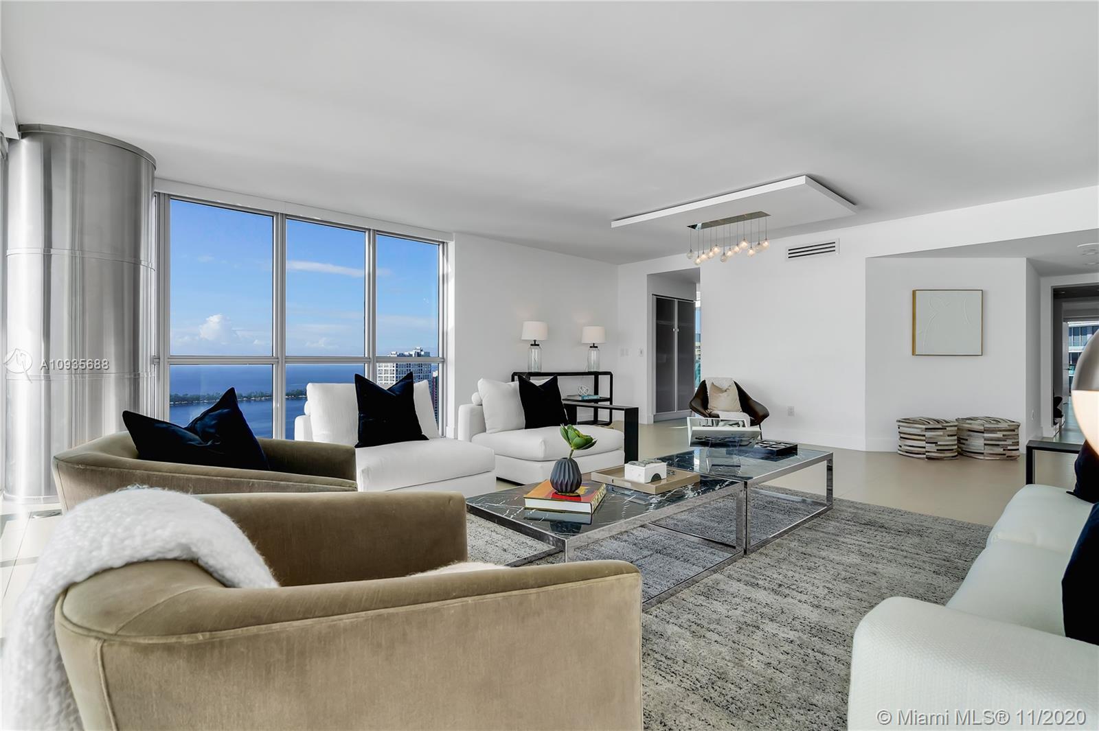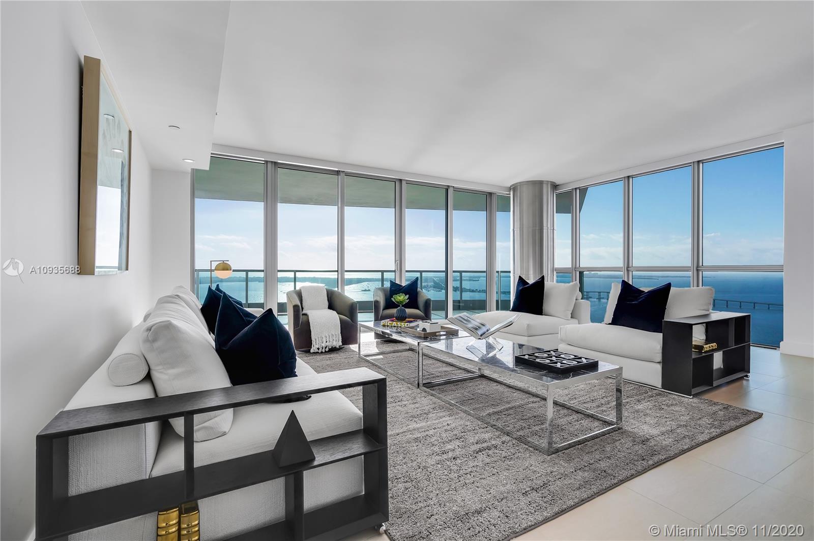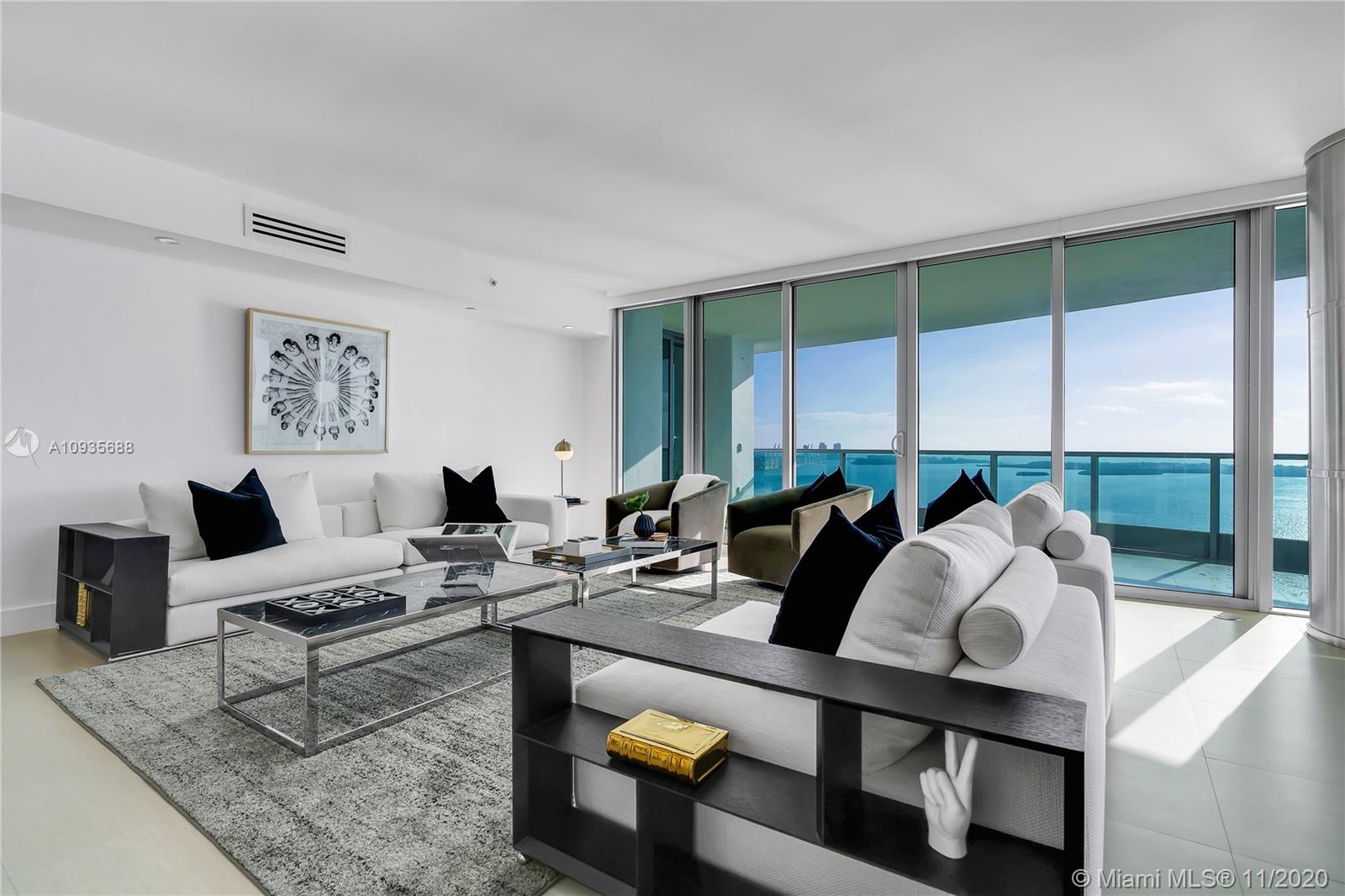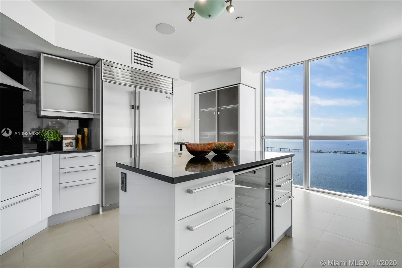 Breathtaking water views from this spacious home in the sky with private elevators! A must see! Featuring 4-bedrooms & 4.5 baths, this Southeast corner unit has unobstructed breathtaking direct water and city views. This home flows all the way from the east to the west of the building and provides you with 270 degree views. This light filled home features modern beige tile floors, gourmet/ Italian cabinetry with stainless steel SubZero refrigerator and Miele appliances. Three balconies with panoramic views. Two parking spots plus free valet services are also included. The amenities are first-class offering a Full Gym, Health Spa, Club Room, Roof-top Party Room, infinity edge waterfront pool, cabanas & jacuzzi. Vacant, easy to show!! Will not last! Now accepting Bitcoin.
