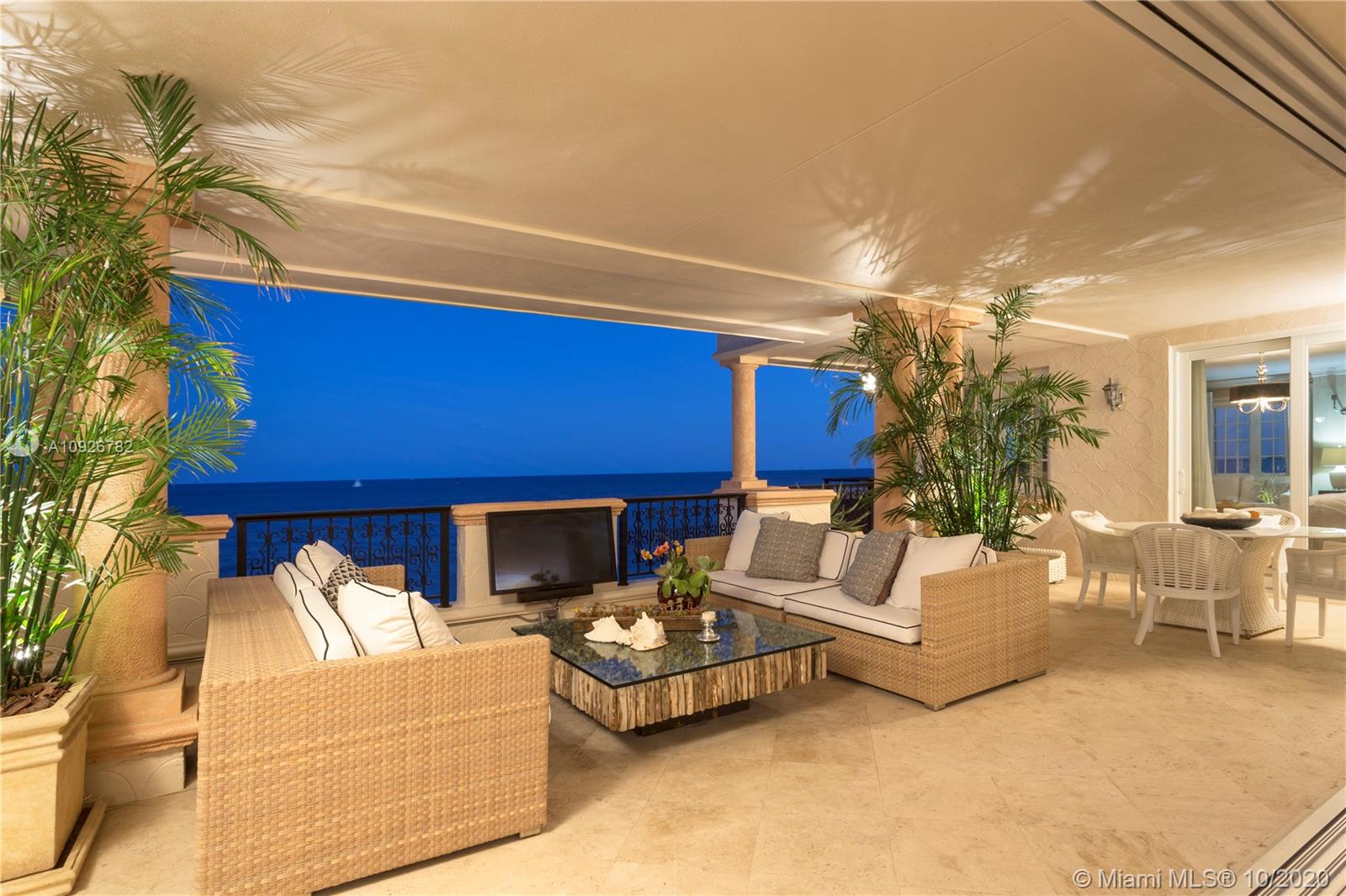 Oceanfront view and government cut, center stack entire 7th floor privacy to the fullest. Home features open floor plan, spacious living room with fire place, private office, master suite with gym/sauna and outdoor hot tub. Outdoor fitness area off the kitchen balcony. Open chef's kitchen with granite counter/ center island and high end appliances. Unit has marble floors, surround sound system, multiple private balconies, three parking space and golf cart parking. Residence sold unfurnished with option to buy furnished.