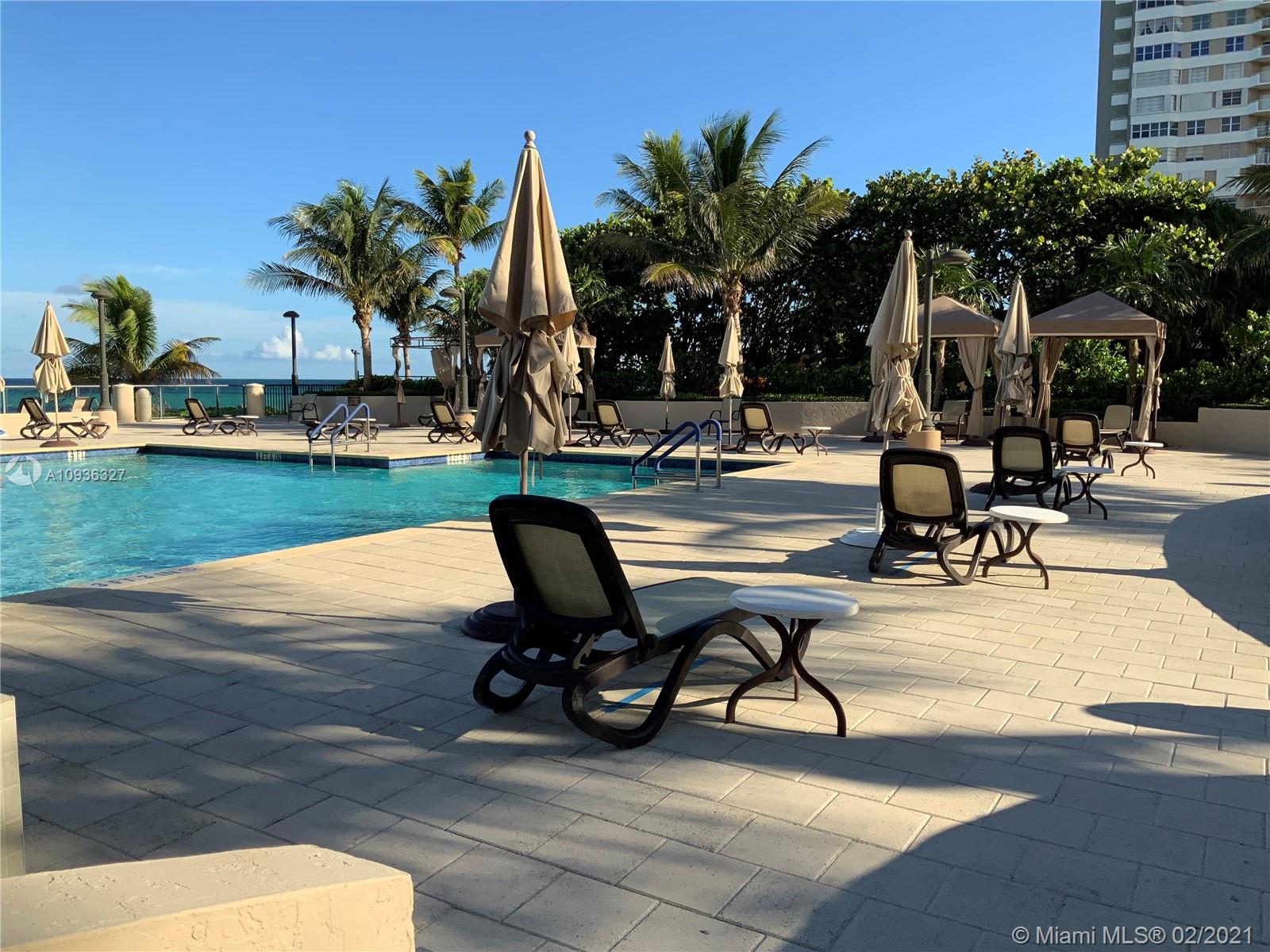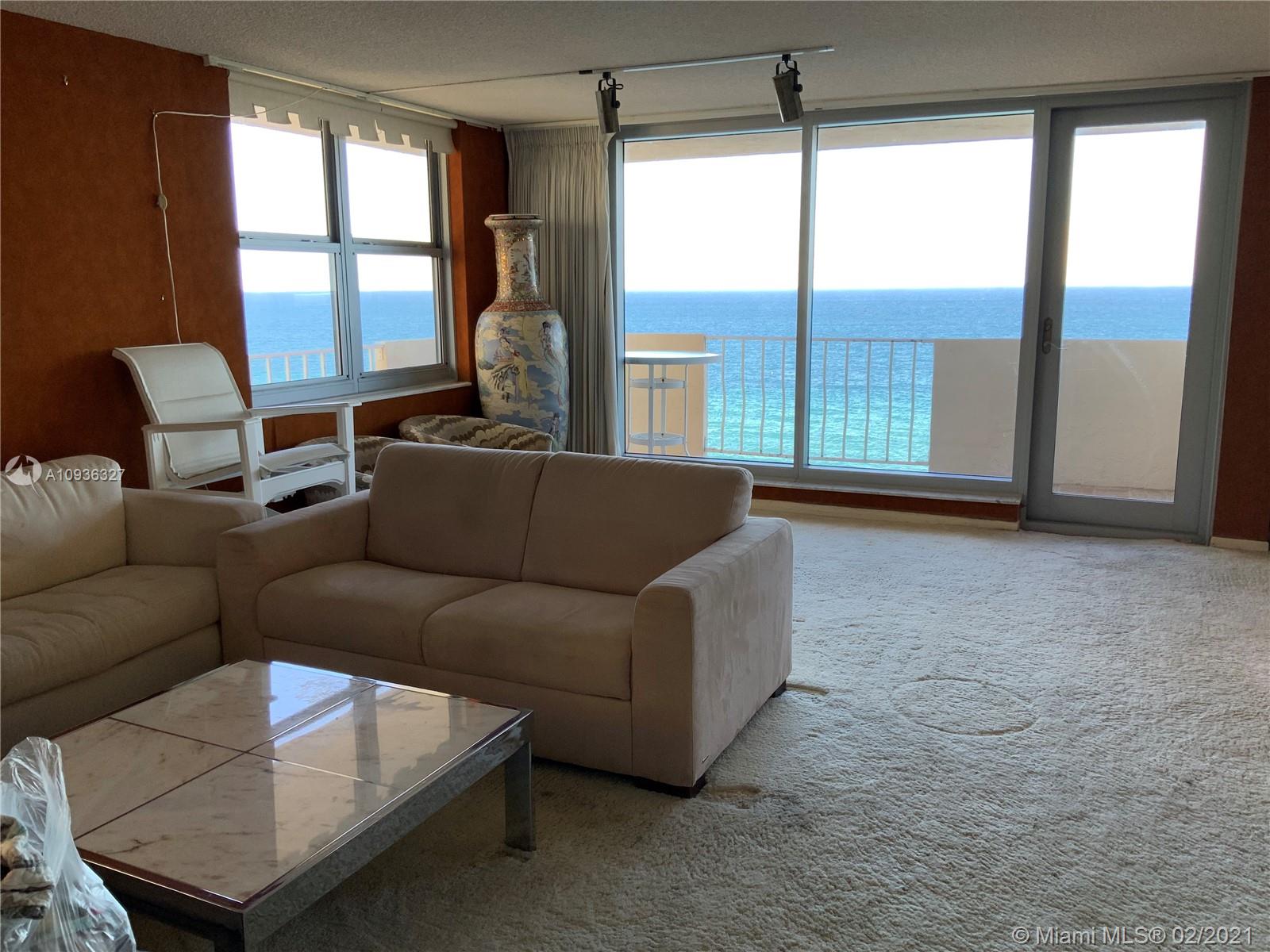 Amazing Direct Ocean views. Large 2 bed room and 2 full bathrooms apartment. North East Corner unit almost 2,000 sq ft. Ocean views from all rooms. Only 4 Apartments per floor. Each bed room has 2 walking closets. Laundry machines inside apartment. Huge corner wrap around balcony. New High Impact Hurricane windows. Amenities include: cable TV and HBO, Beach service, Large Heated swimming pool with Jacuzzi and Cabanas, BBQ Grills, GYM, Tennis court, Party room with kitchen, 24 hours Security, Reception and Complementary Valet Services. Walking distance to stores. Apartment needs complete Remodeling and has lots of potentials for Interior Design. With open kitchen remodeling would have Direct Ocean view. Covered parking. Apartment is vacant and easy to show ask Listing Agent for showing.