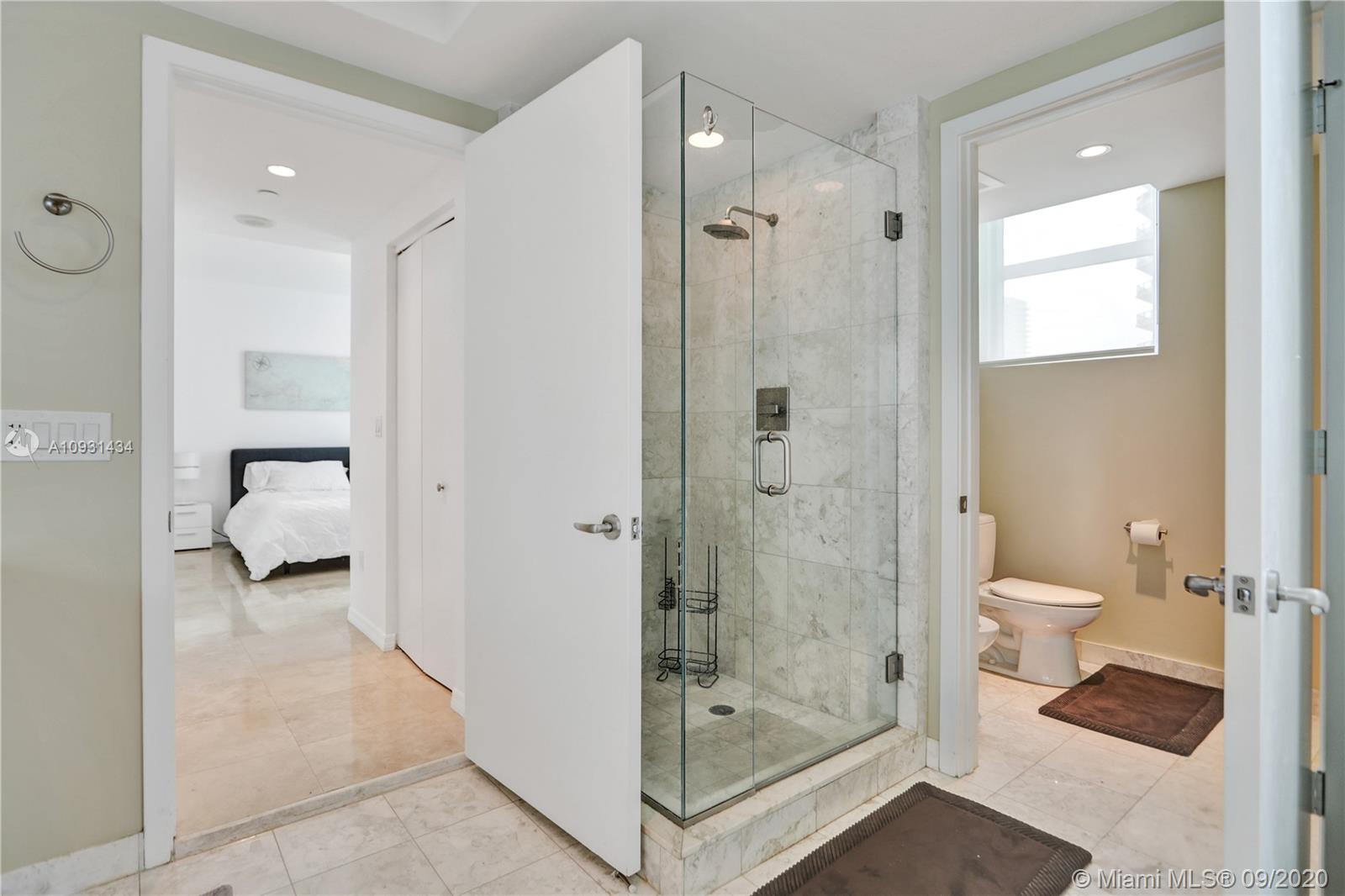 Luxurious, Upscale, Urban living at its best at JADE Residences at Brickell Bay. Unit features private elevator foyer entry. Spacious 2/2 split plan with marble floors, kitchen with Italian Cabinetry, Stainless Steel appliances, wine cooler and more. Marble baths, large walk-in closets, large wrap around terrace with Biscayne Bay views and more. Resort style amenities, rooftop sky lounge, bay front fitness center and infinity edge pool, racquetball court, sauna & spa. Media room, library, business center with conference room, 24 hour monitored security, concierge & valet. JADE is close to Brickell City Center/Financial District, restaurants, supermarkets, night life & much more. Unit has 1 assigned parking and valet parking.